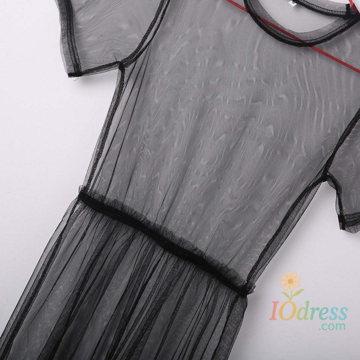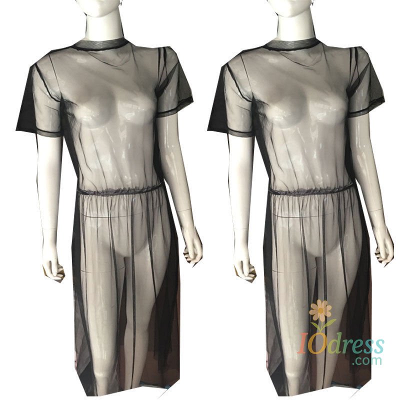 2018 Summer Volie Mesh Dresses Women See Through Black Gauze Mesh Sundress Half Sleeve Lace Sexy Outwear 1-Piece Summer