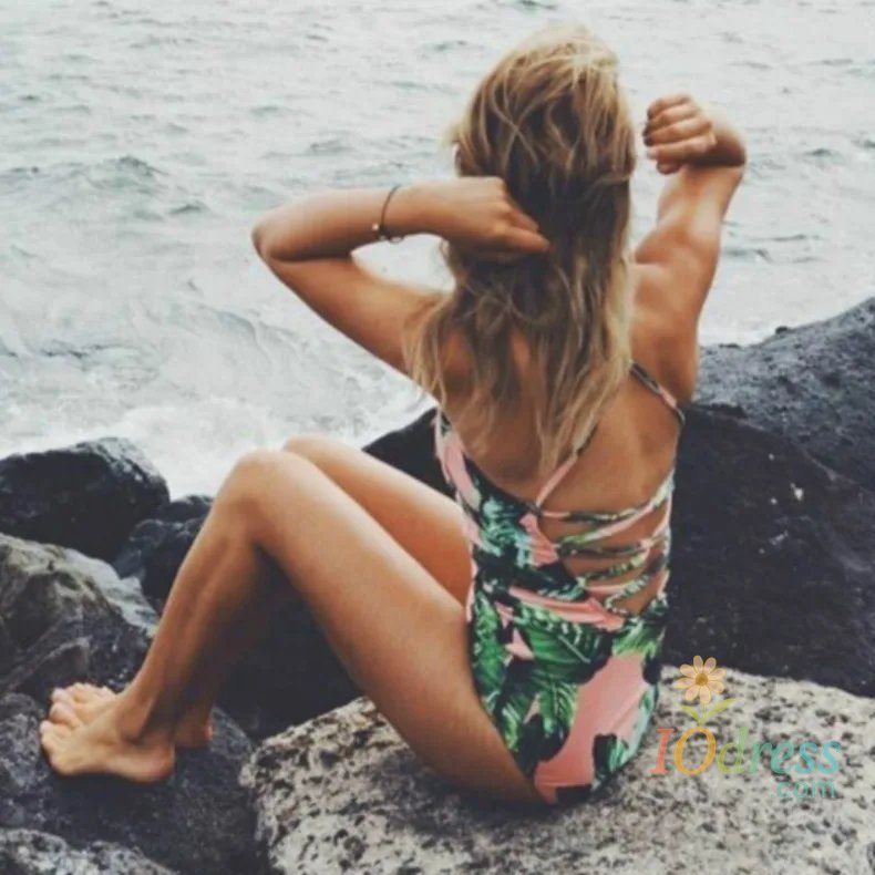Sexy One Piece Swimsuit Swimwear Women Leaf Print Hollow Back Straps Bathing Suit Beachwear Banadores Mujer 2024 Bikinis Mujer