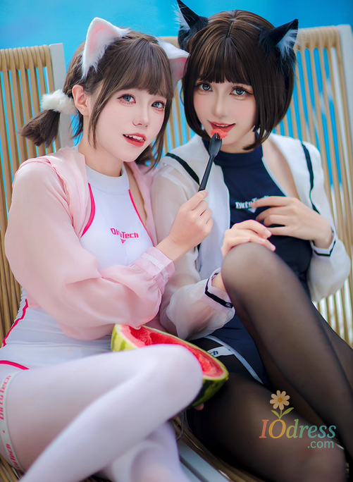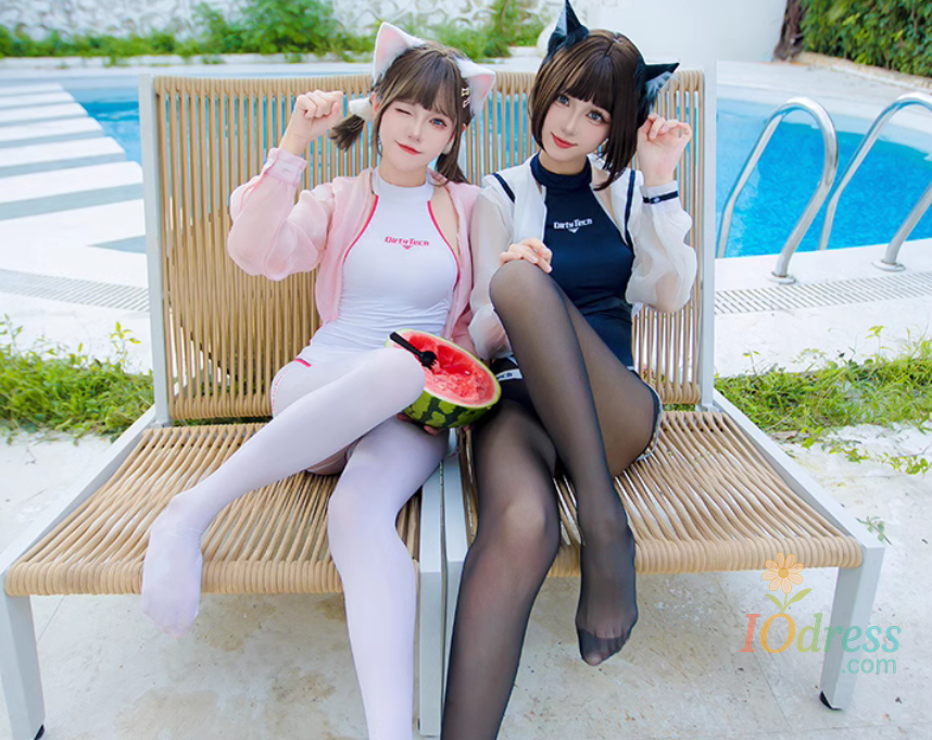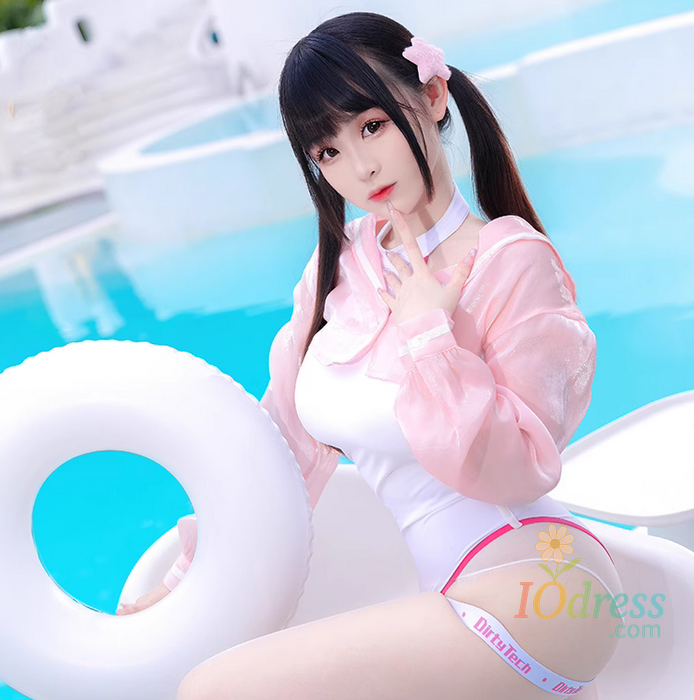 Anime JK Girl Competitive Swimming Japanese School Swimsuit Women High Leg Cut Leotard One-piece UPF Coat Set Cosplay