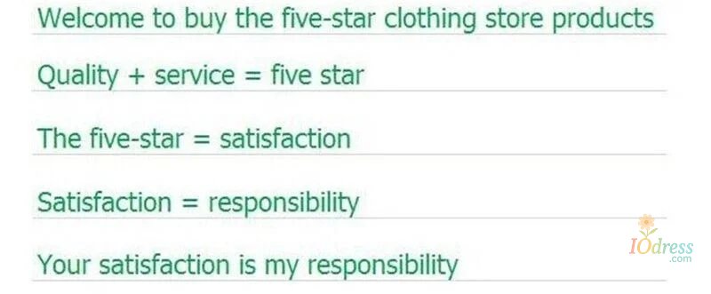 IO Dress is not liable for problems under the following: Wrong size or color picked; Customer‘s subjective factors and just dislikes the item. Return shipping fees and the shipping fees from IO Dress to customer are at customer's own expense.