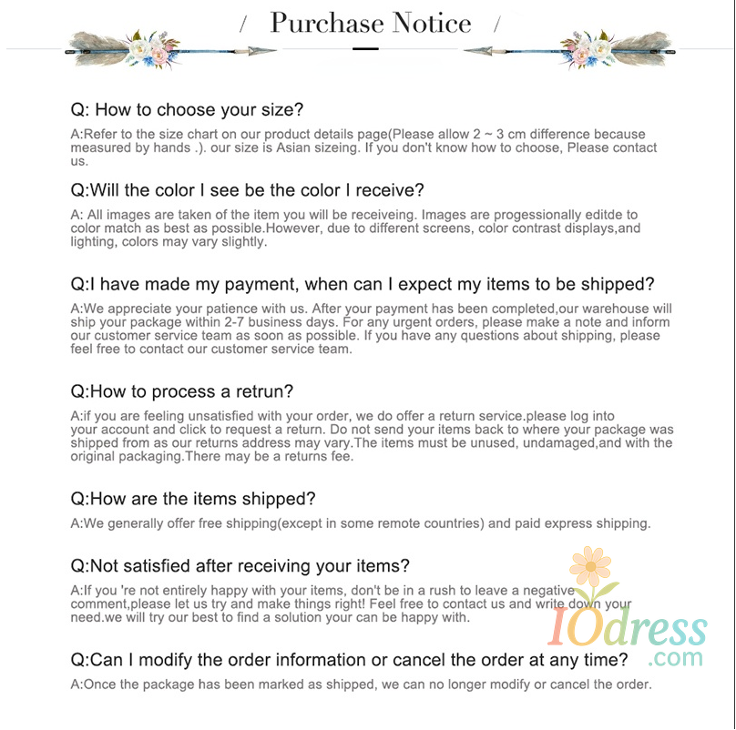 2. Processing time: In order to guarantee the quality of our products, Iodress.com has to prepare your goods carefully before they are shipped out. Our professionally trained technicians perform strict in-house quality control checks on all products and carefully package your items to ensure they arrive in excellent condition.