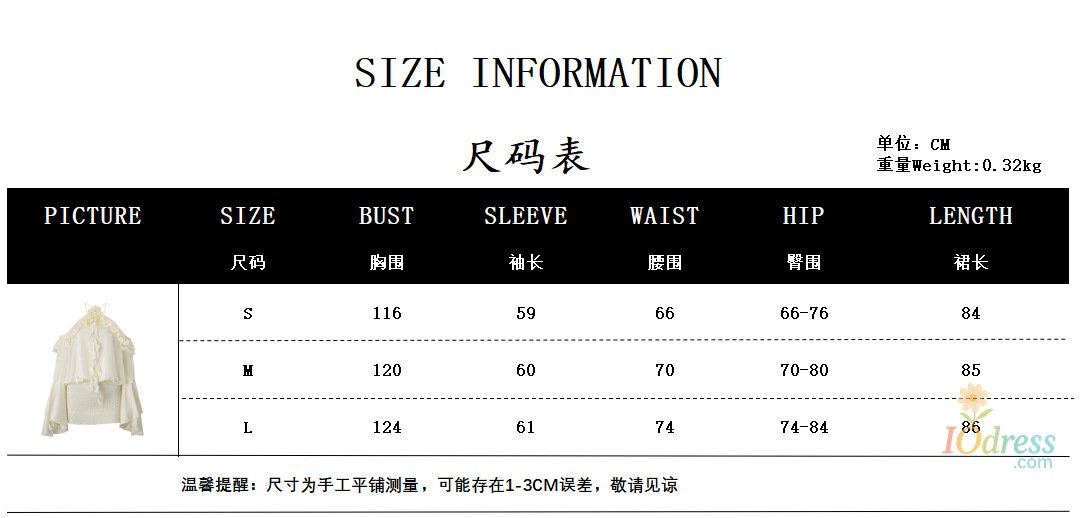 MLength: 85Bust: 120Sleeve: 60Waist: 70Hip: 70-80