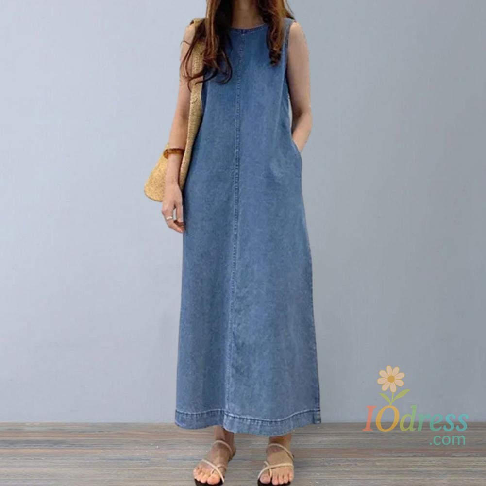 Round neck sleeveless long dress.