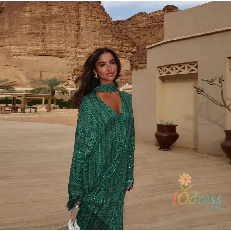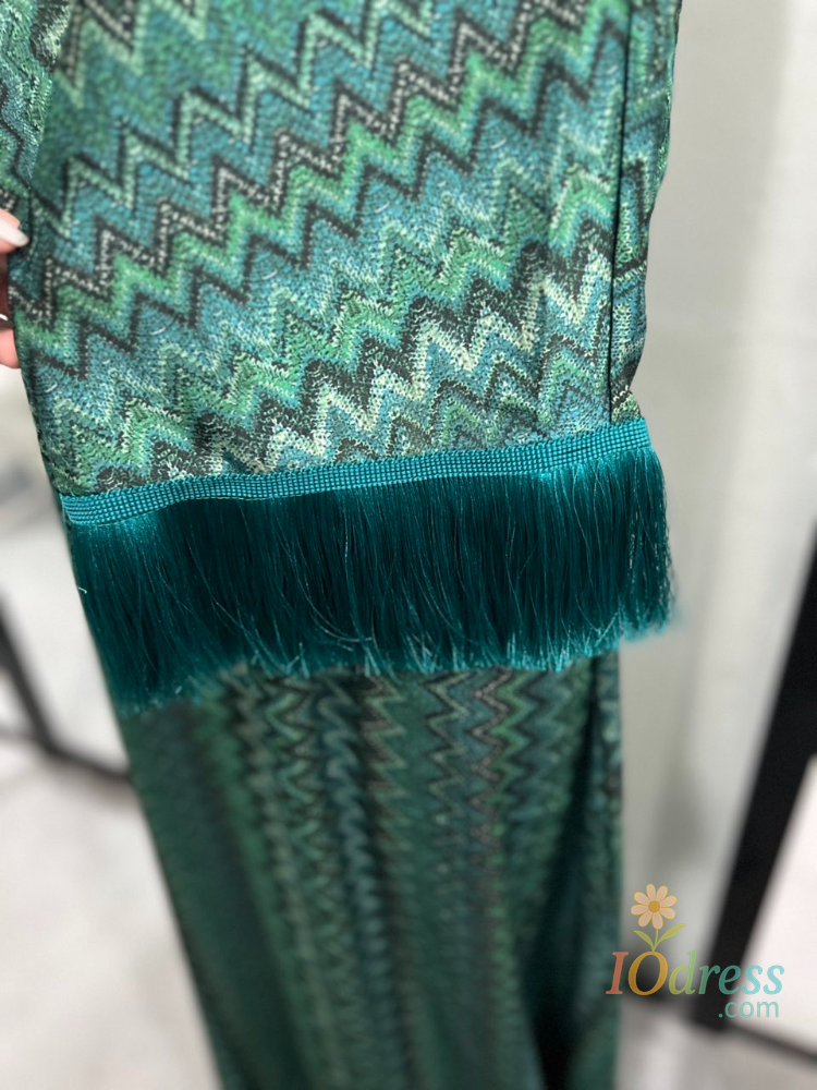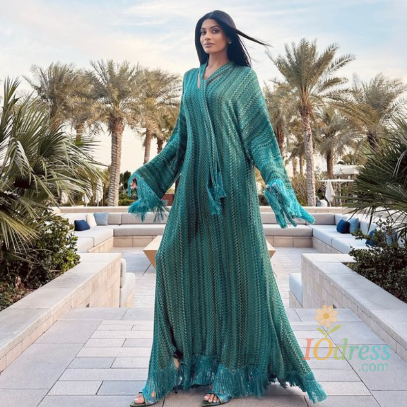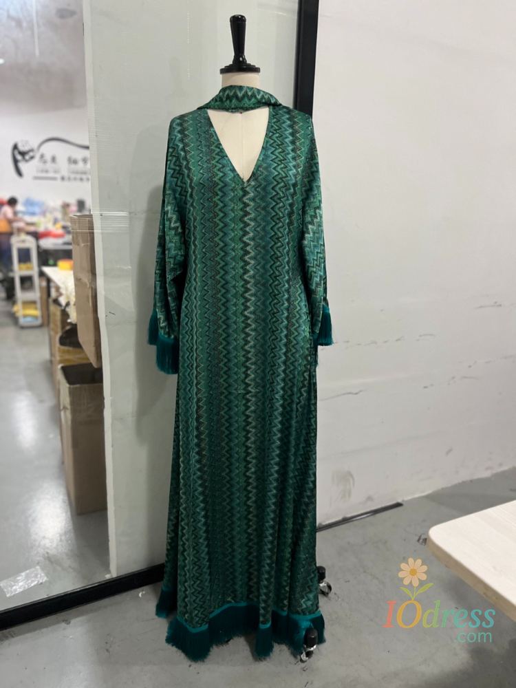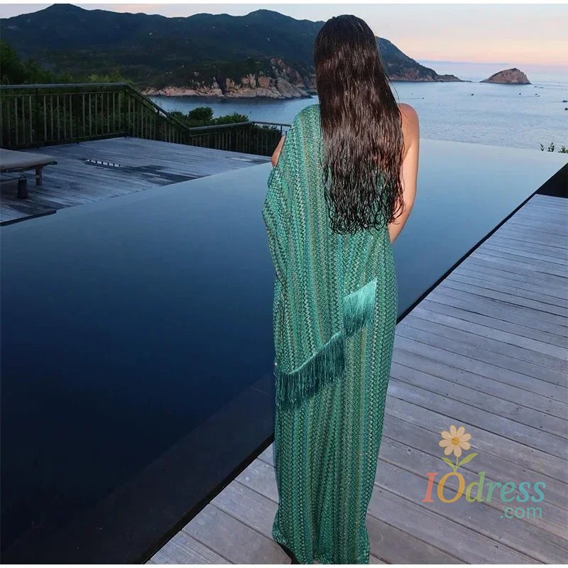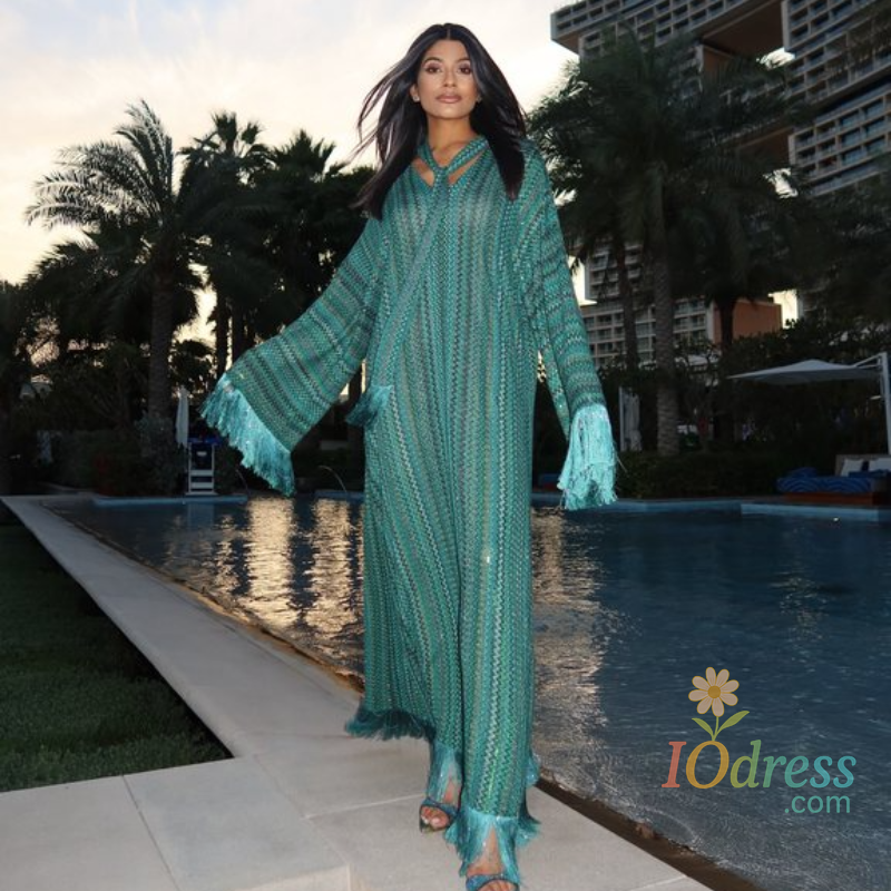 This dress features a sophisticated V-neck design and elegant tassel detailing, perfect for adding a touch of sophistication to any summer outfit.