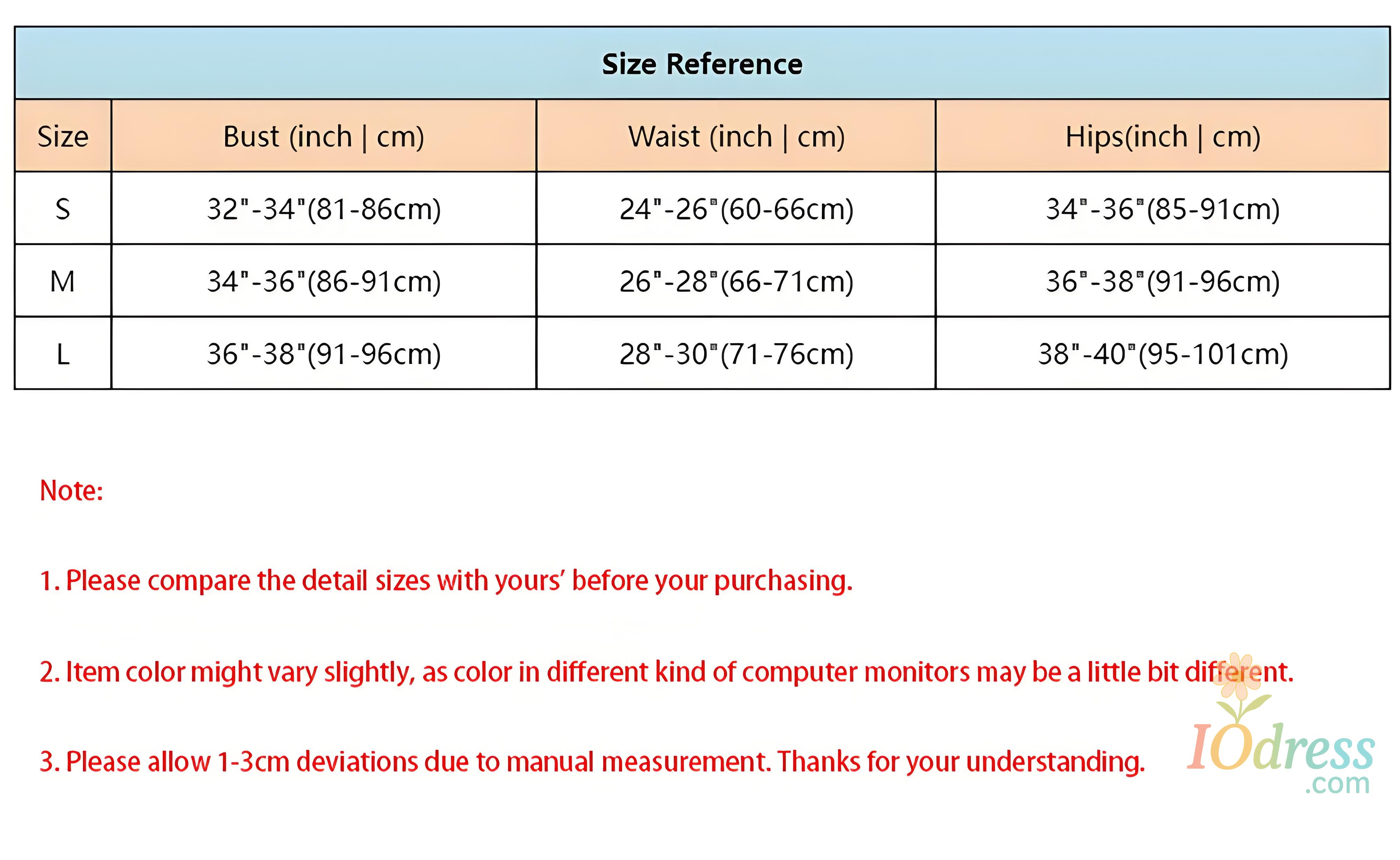 IO Dress is not liable for problems under the following: Wrong size or color picked; Customer‘s subjective factors and just dislikes the item. Return shipping fees and the shipping fees from IO Dress to customer are at customer's own expense.