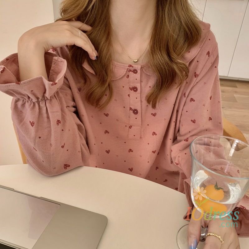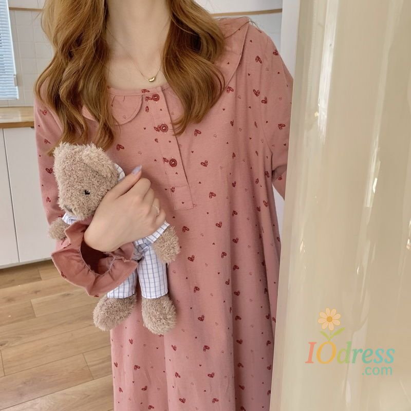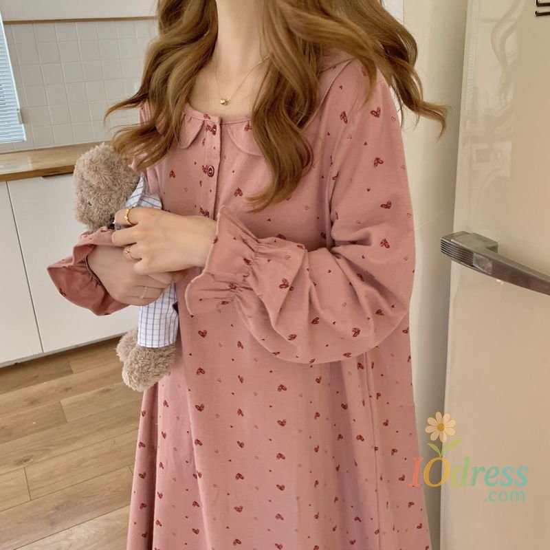 This heart print nightgown features a charming Korean style design, adding a touch of elegance to your bedtime look.