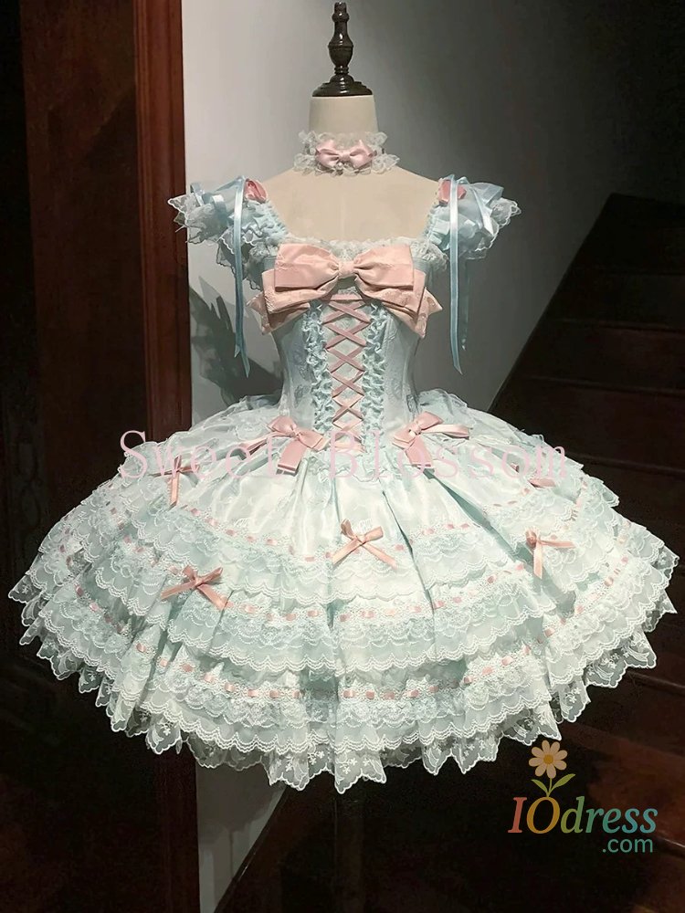IO Dress Japanese Sweet Lolita Kawaii  Fluffy Dress Women JK Lovely Ballet Princess Cake Dresses Harajuku Lace Bow Patchwork Cute Outfit