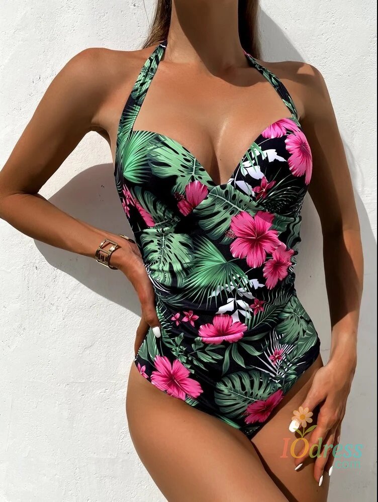 Elegantly conservative, this halter neck swimsuit offers coverage while maintaining a stylish silhouette.