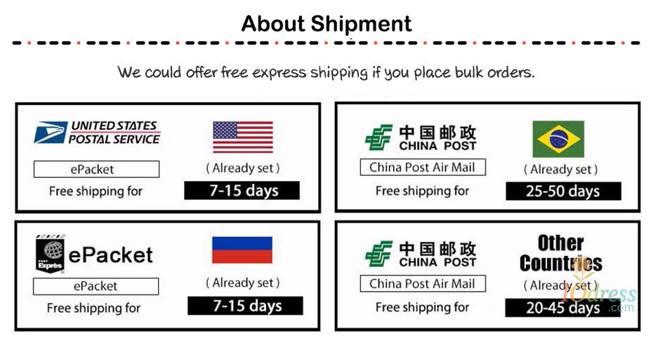 2. Processing time: In order to guarantee the quality of our products, Iodress.com has to prepare your goods carefully before they are shipped out. Our professionally trained technicians perform strict in-house quality control checks on all products and carefully package your items to ensure they arrive in excellent condition.