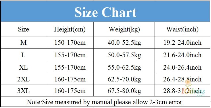 3. Please Allow 1-3cm difference according to manual measurement. (All measurement in CM, please note 1 inch = 2.54 cm,1cm = 0.39 inch,1 chi = 33.3333333 cm)