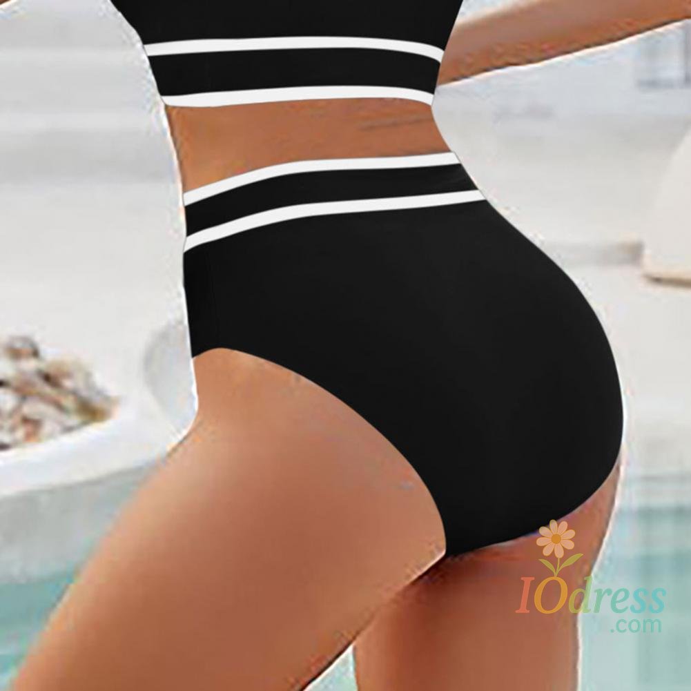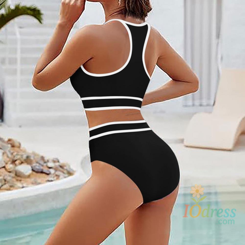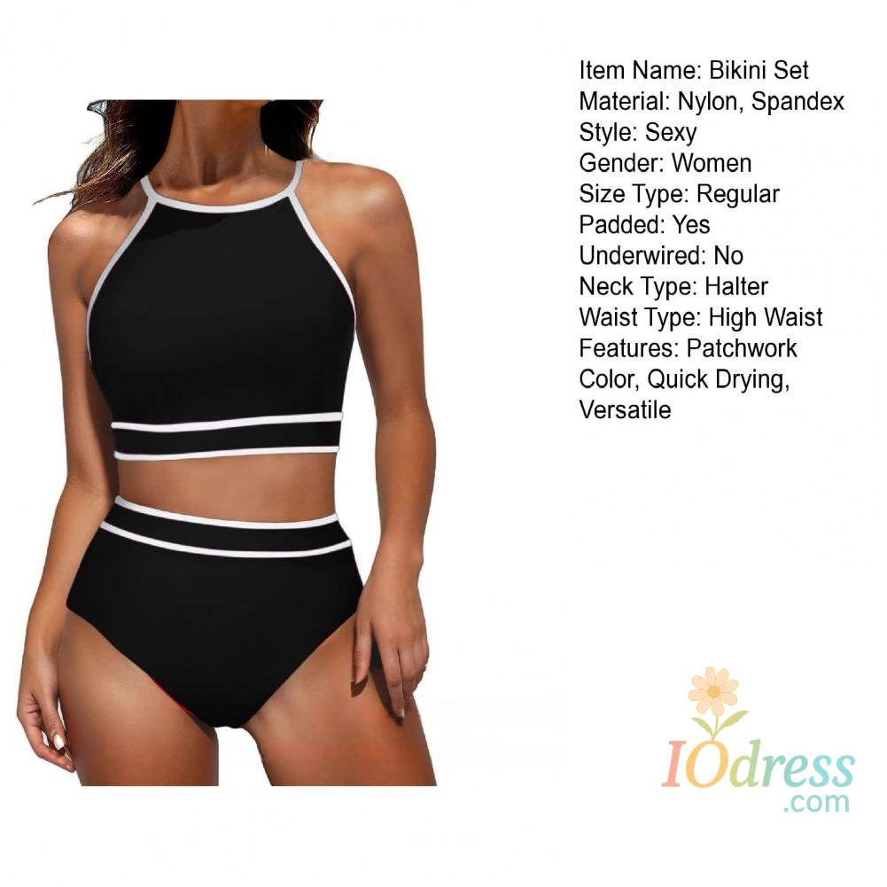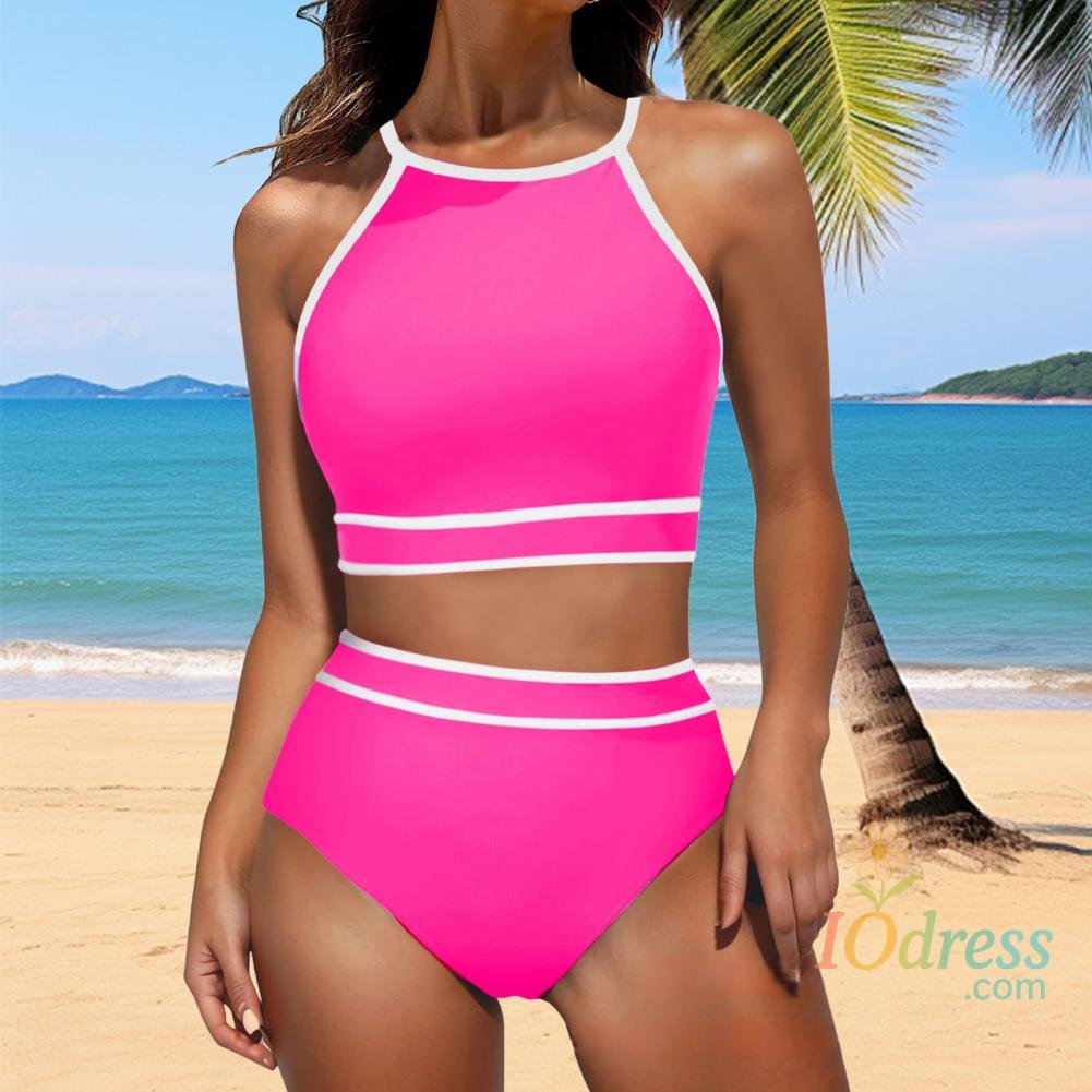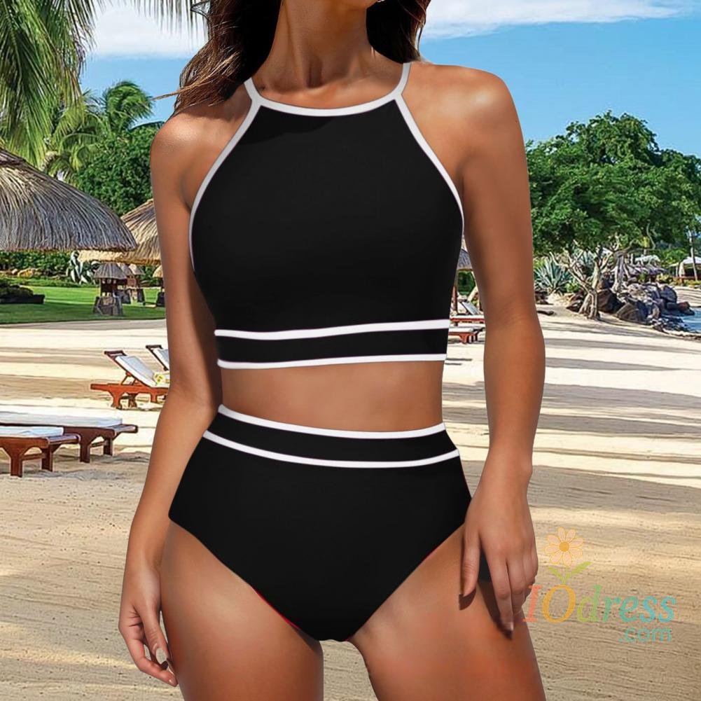 2Pcs/Set Women Bikini Set Halter Racer Back Bra High Waist Swimming Briefs Set Sporty Color Block Swimsuit