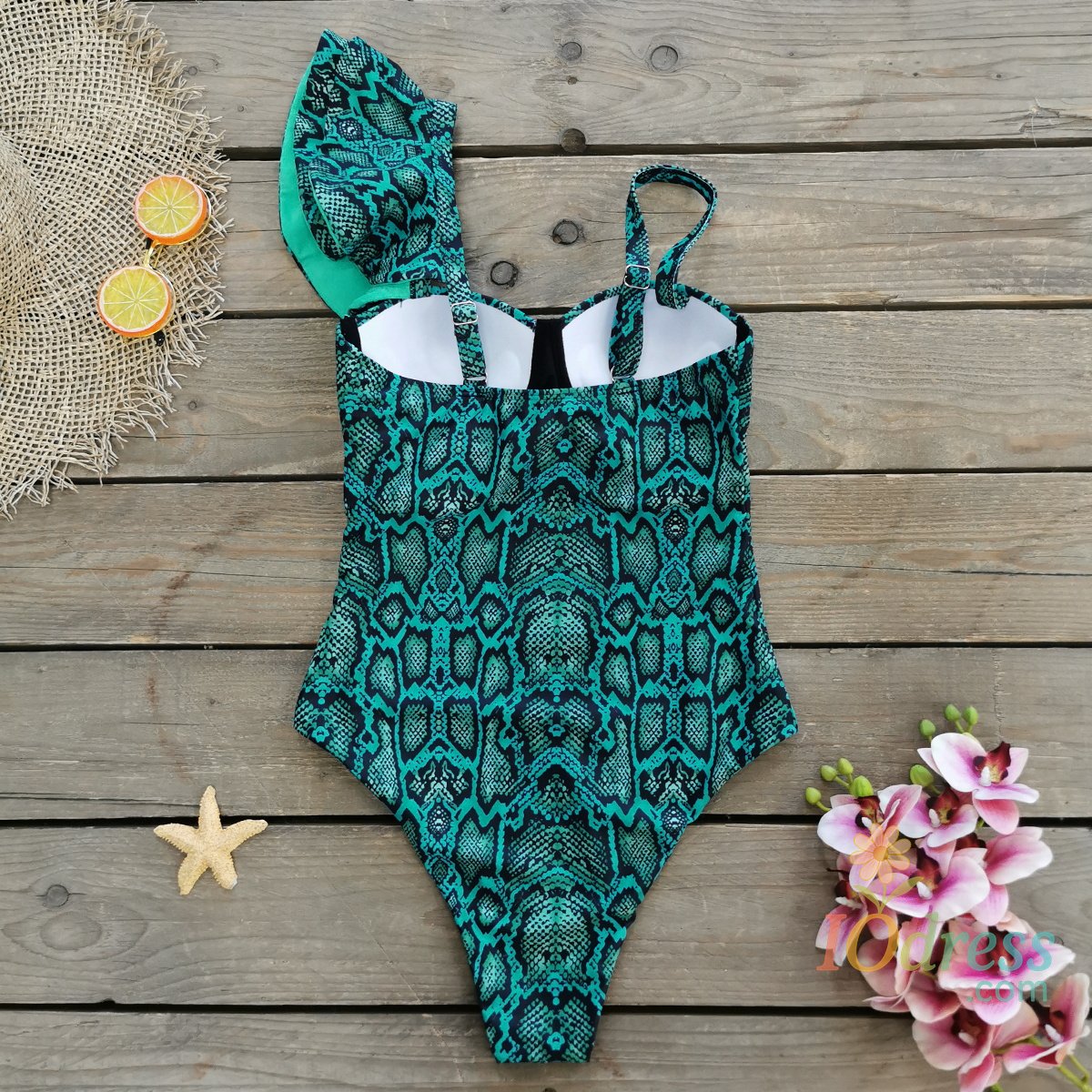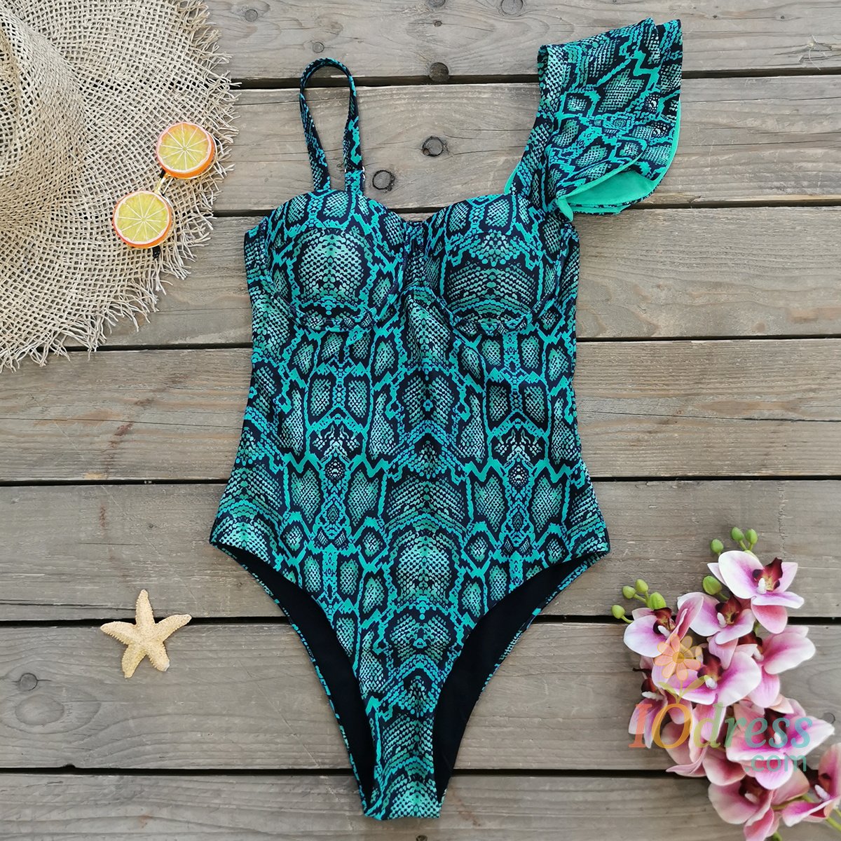 Type : Ruffle Shoulder One Piece Swimsuit