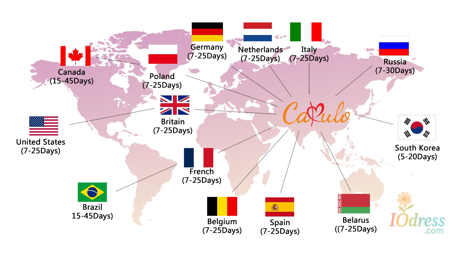 3) PO Box is not accepted if you choose express shipping. Your address should be detailed enough, even include apartment or unit number. Nondelivery or extra shipping fee due to personal reasons will not be taken by Iodress.com.