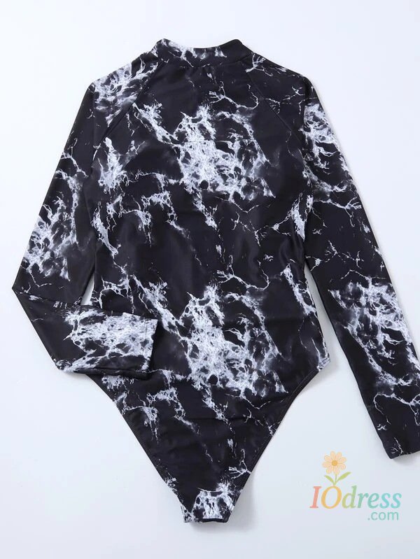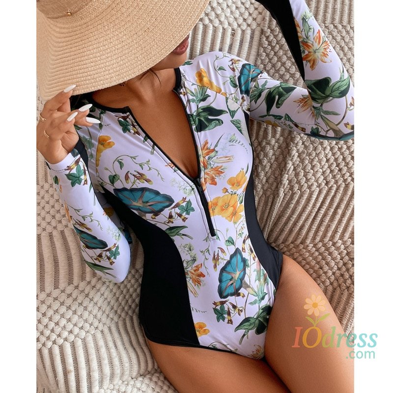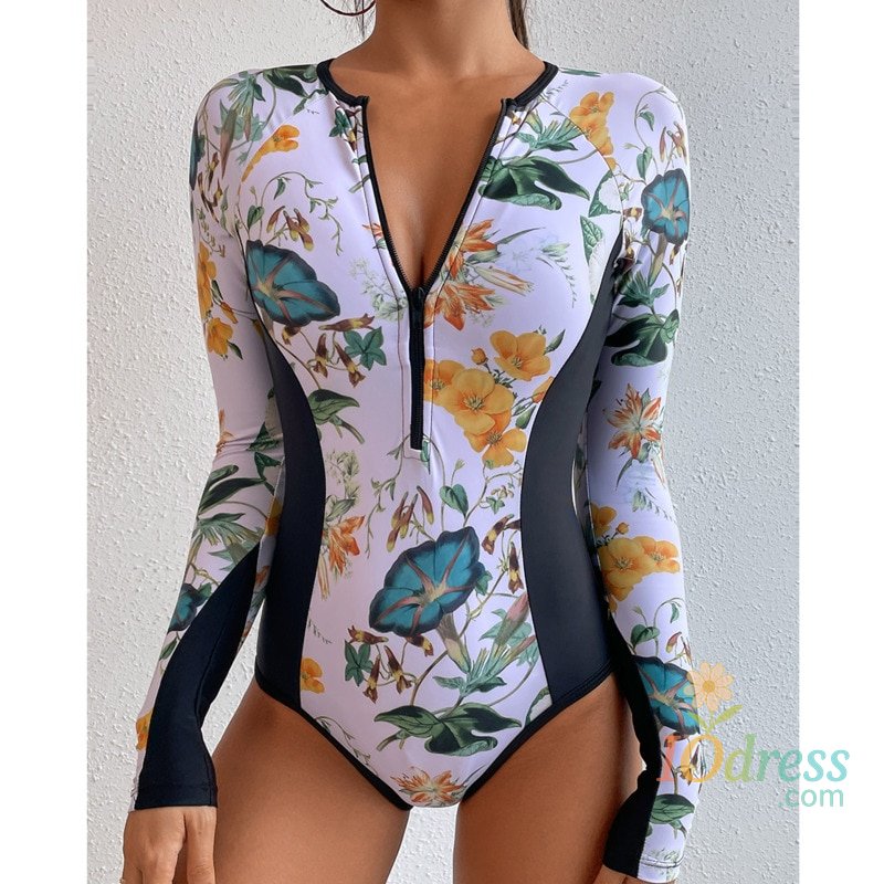 White Solid Color One-Piece Swimsuit Long Sleeve Swimwear Sports Women's Swimming Bathing Suit Beach Bather Surfing Swim Wear