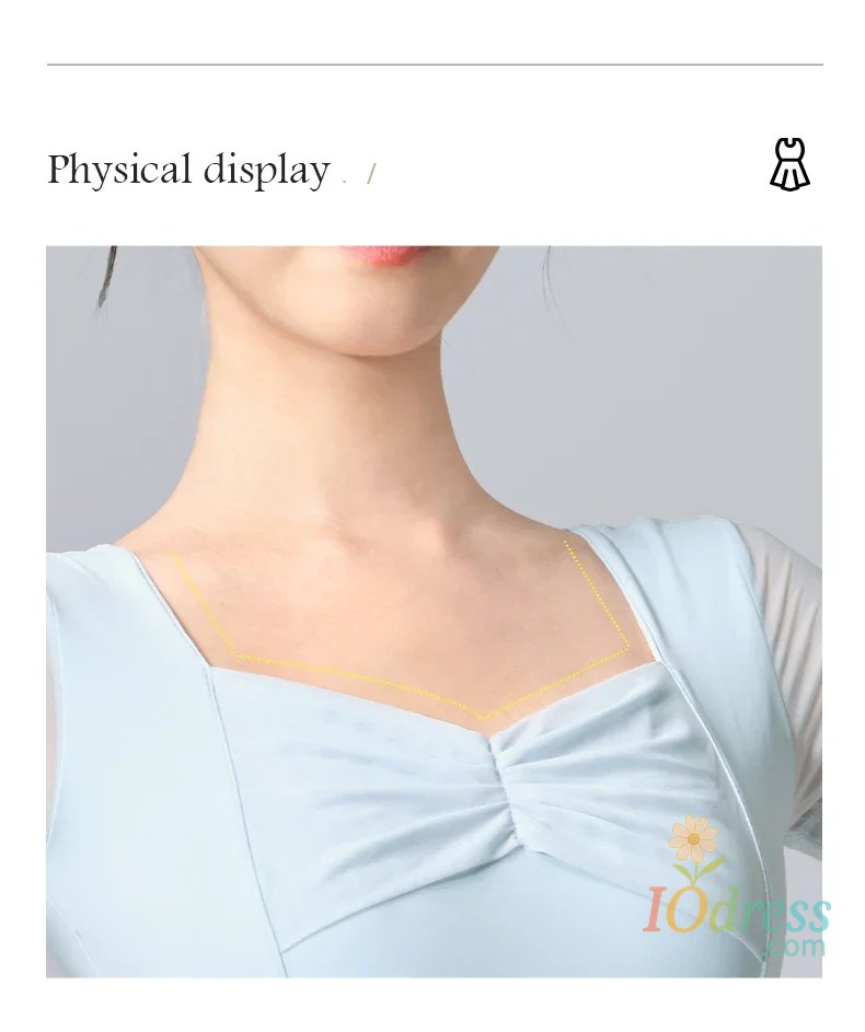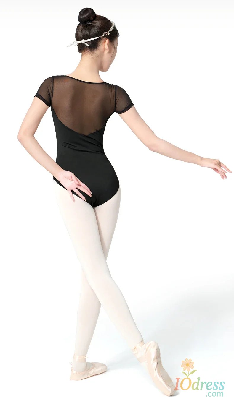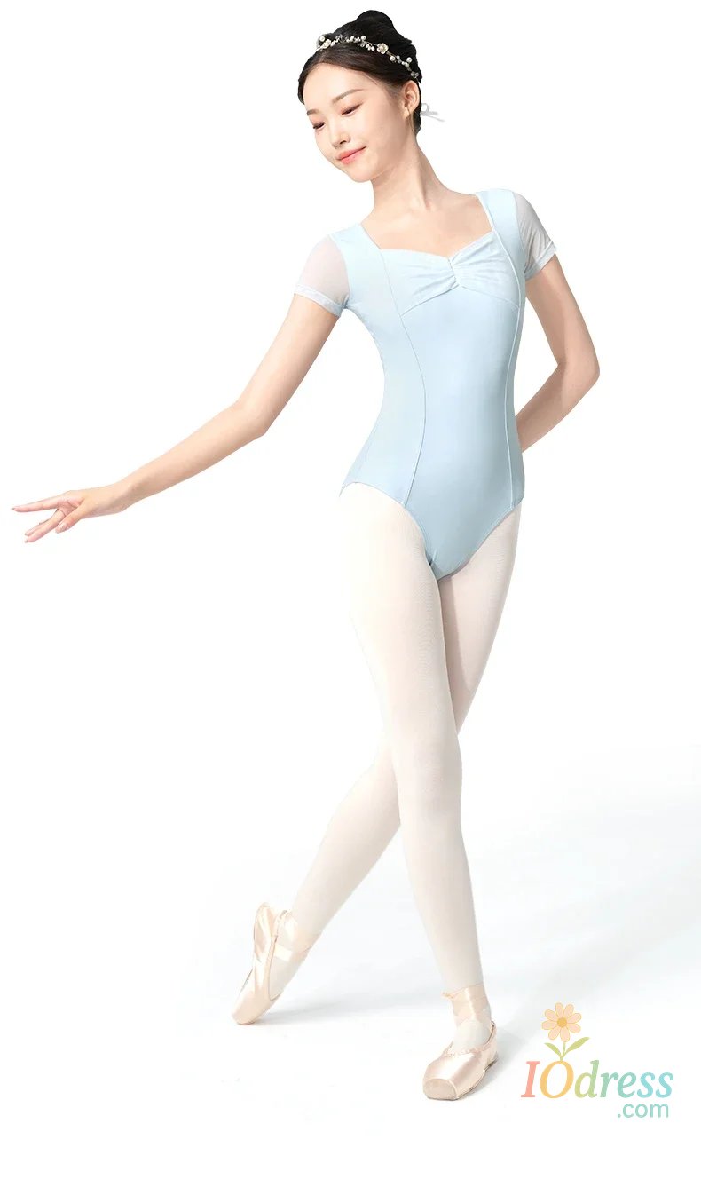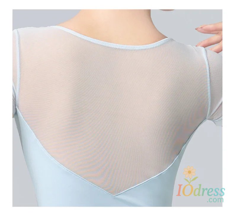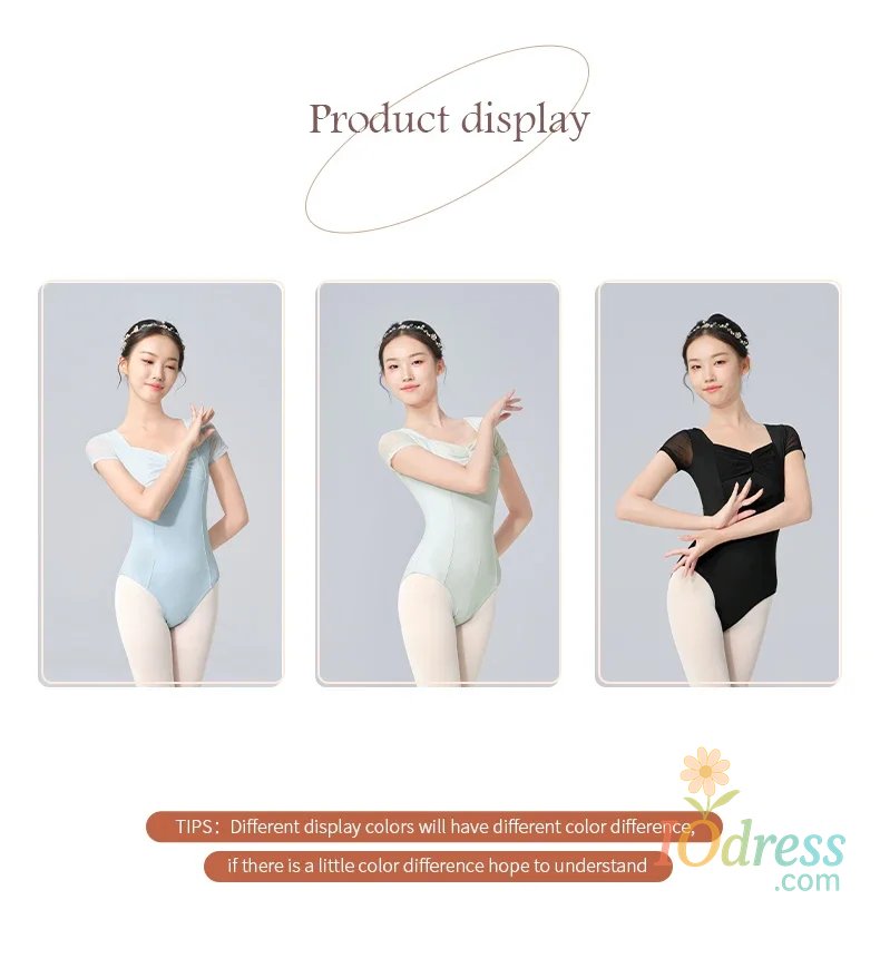 Women Ballet Leotards Pleating V-neck Gymnastics Uniform Mesh Splice Ballerina Dance Leotards Yoga Pilates Dancing Bodysuits