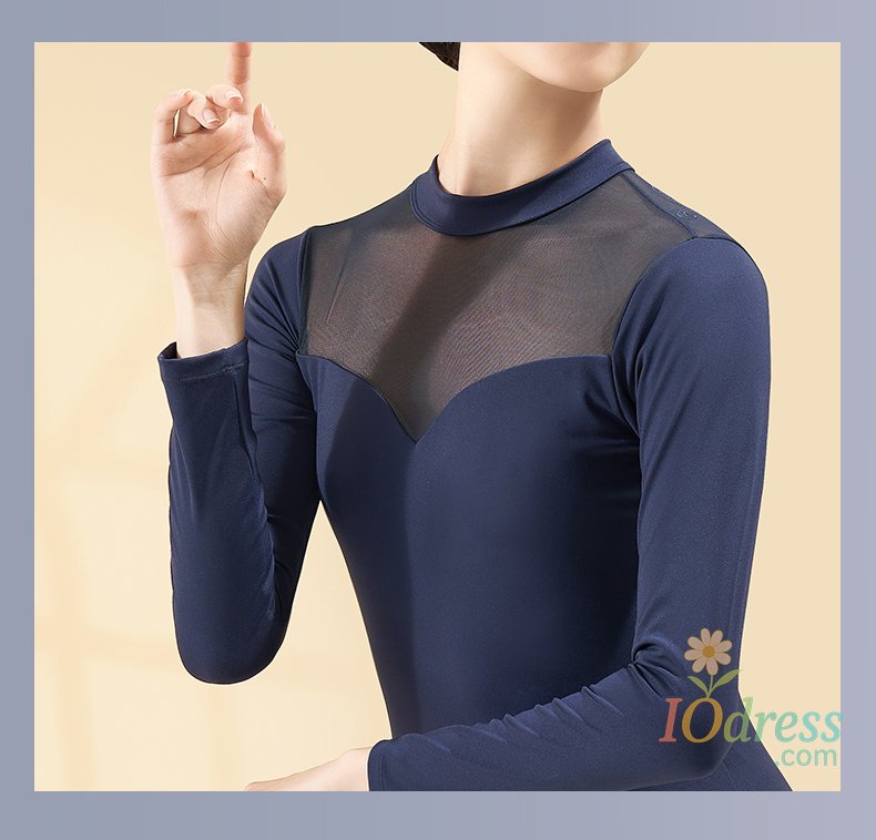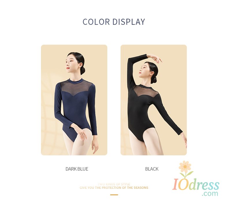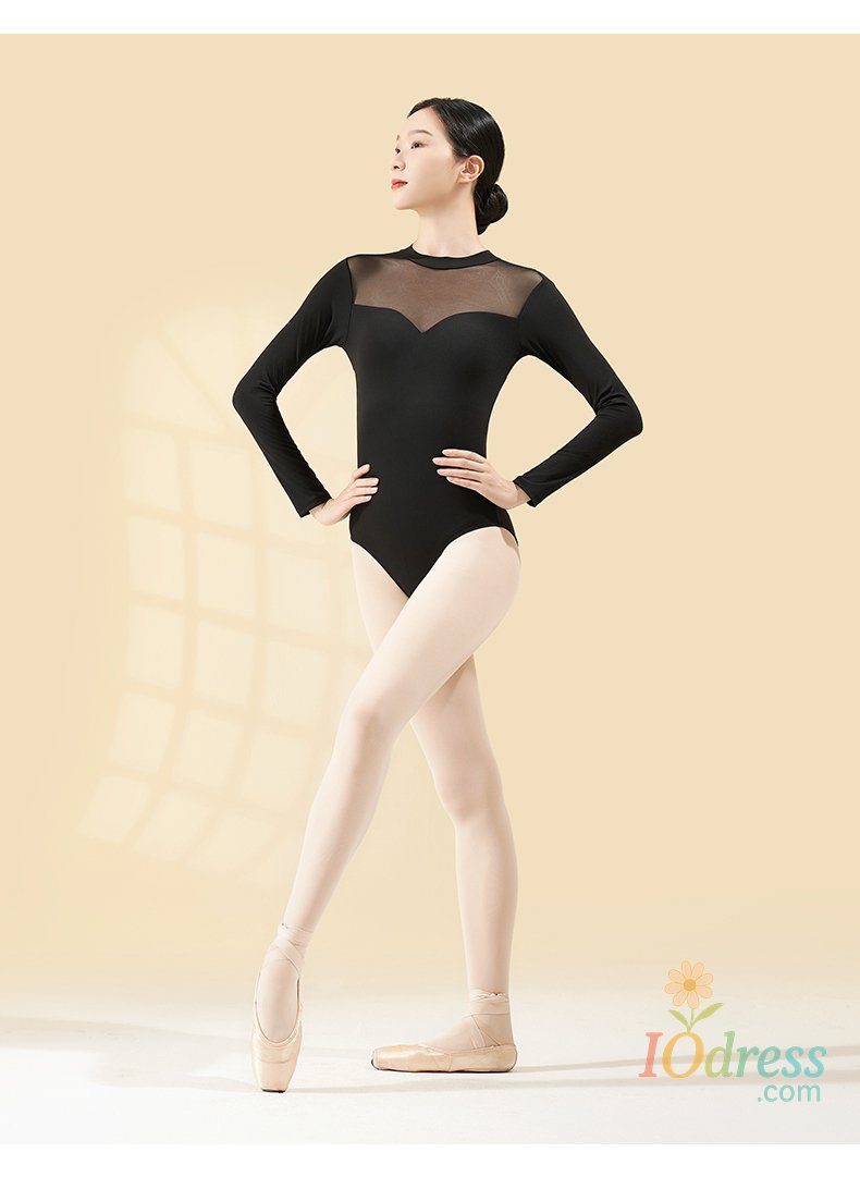 Women Black Ballet Leotard Long Sleeve Dance Bodysuit Soft mesh Splicing Gymnastics Leotards for Yoga/Skating/Dancing