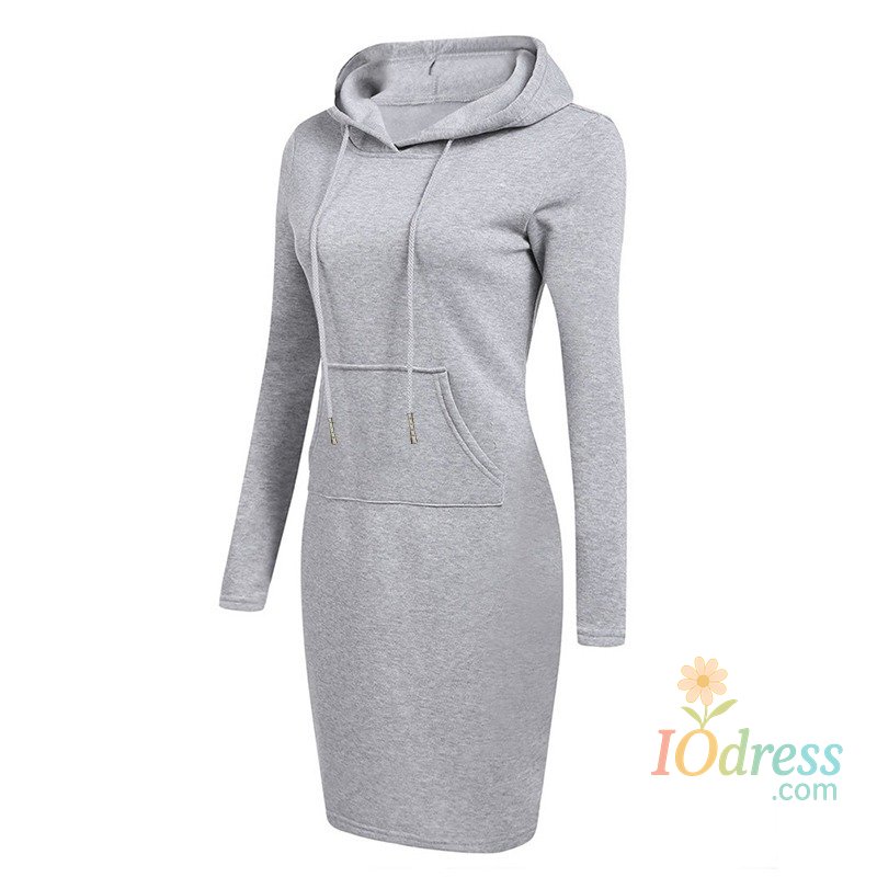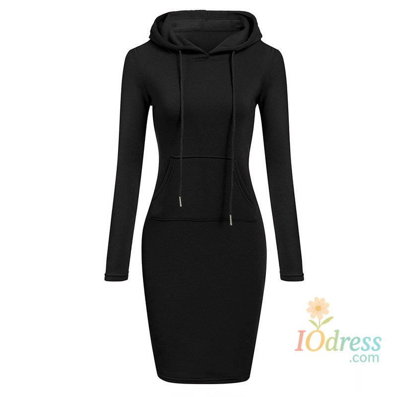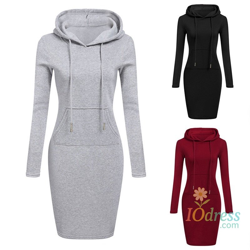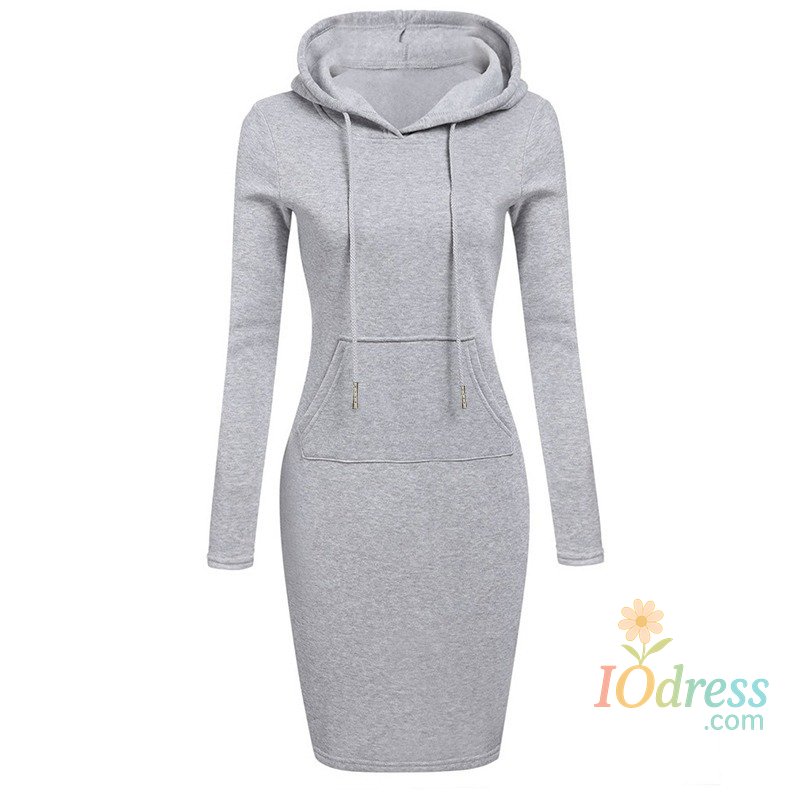 1.Fashion knee-length dress with hooded sweatshirt design combining comfort and fashion for daily wear.