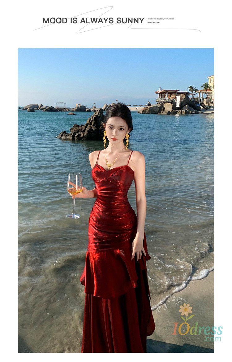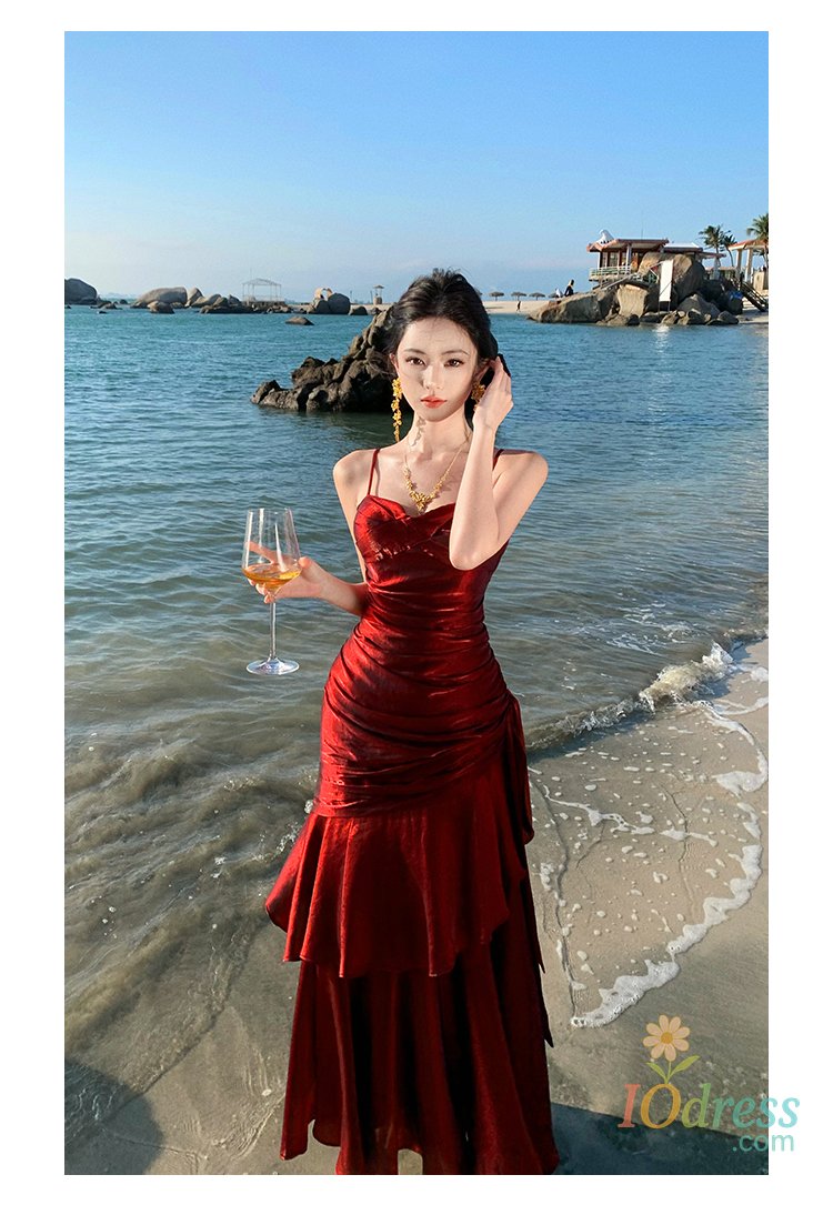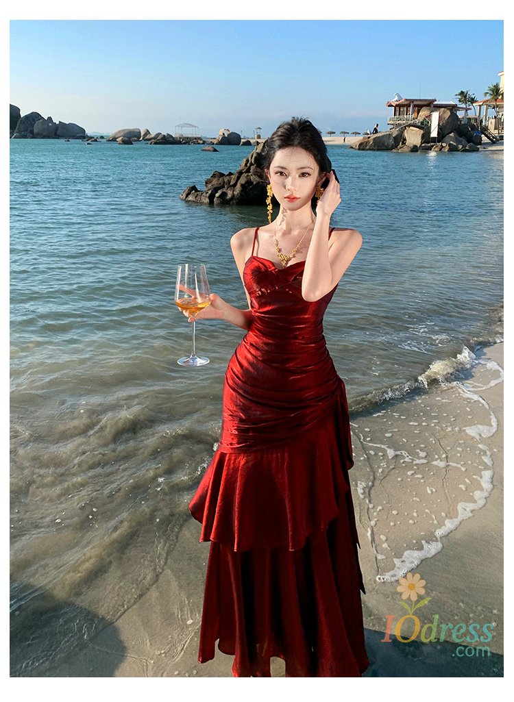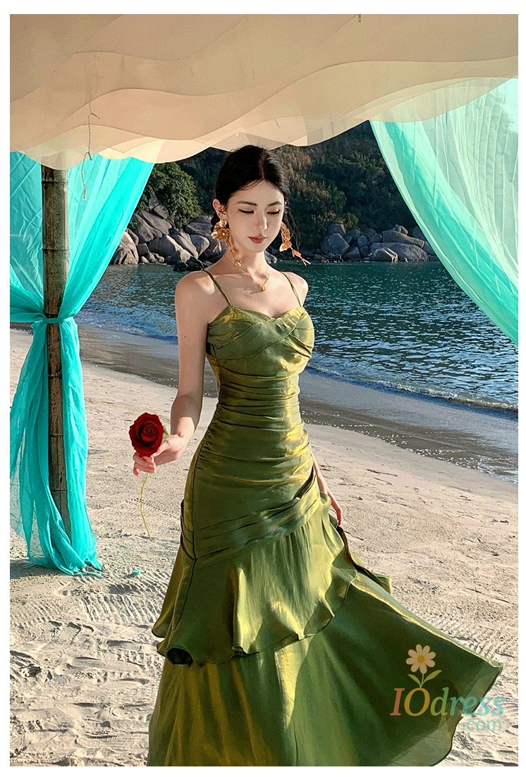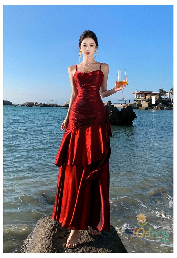 IO Dress Women Sexy Spaghetti Strap Party Dresses Elegant Ruffles Evening Birthday Dress Wedding Prom Vestidos Long Robe Female Clothing