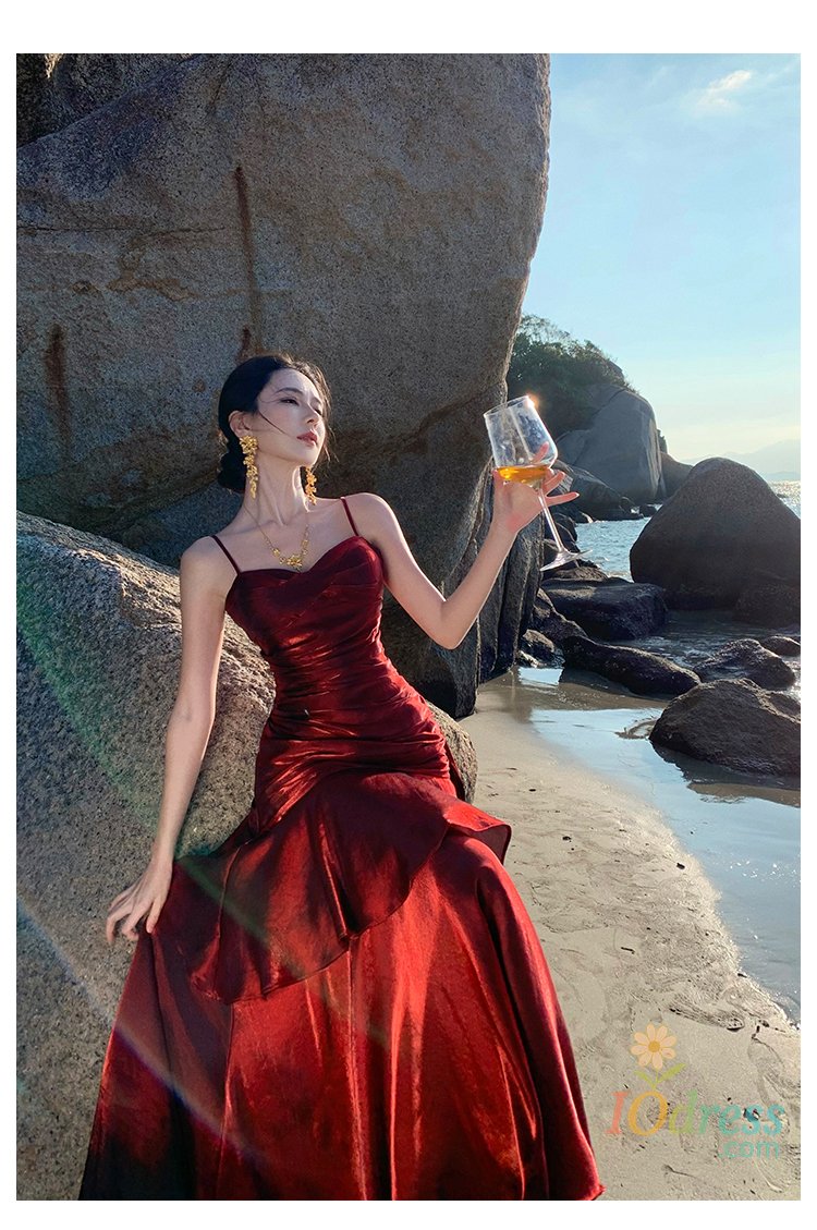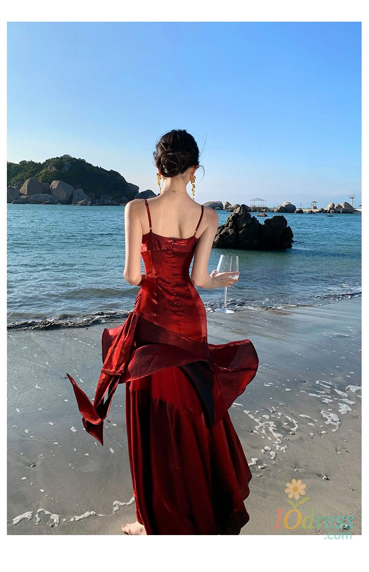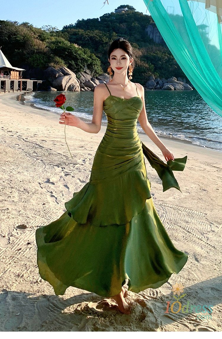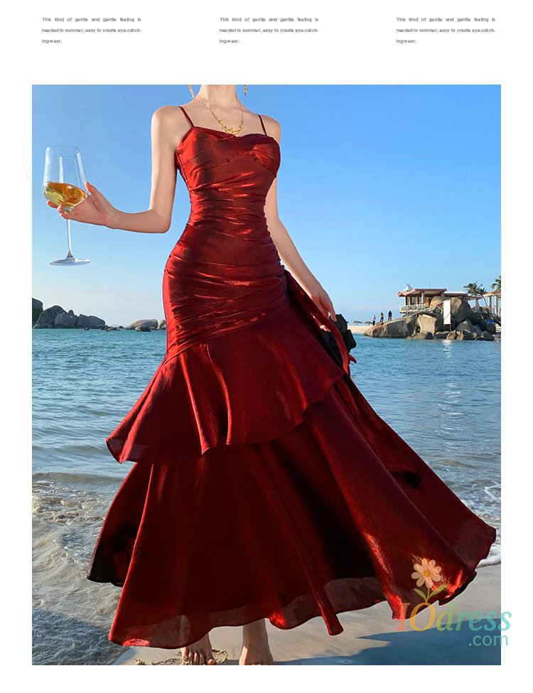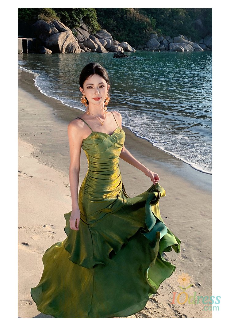 IO Dress Women Sexy Spaghetti Strap Party Dresses Elegant Ruffles Evening Birthday Dress Wedding Prom Vestidos Long Robe Female Clothing