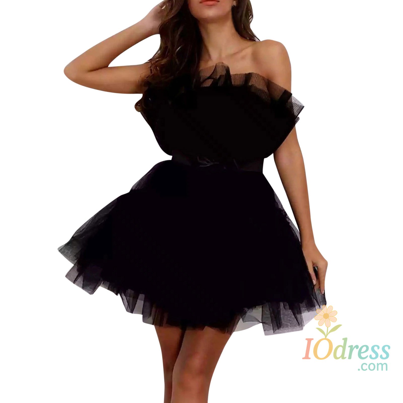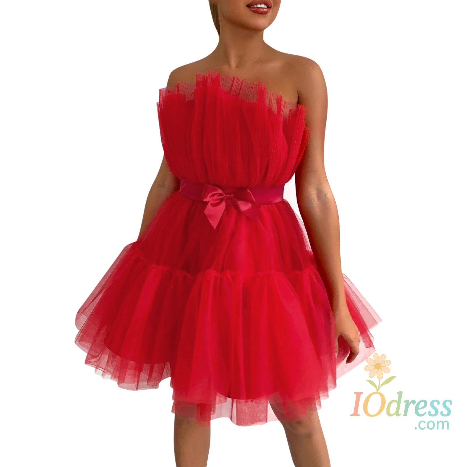 Dresses for Women: Women's strapless tutu tulle mini dress ruffle mesh princess dress, off the shoulder, strapless mini dress, show the charm of your clavicle and chest. Ruffled top bodice makes this dress unique and distinctive. dress for women, High waist with ribbon bowknot at front makes you look sweet and charming, gives you a slim fit looking. Knee-length a-line dress, shows your long and skinny legs. Puffy short prom dress make you stand out .
