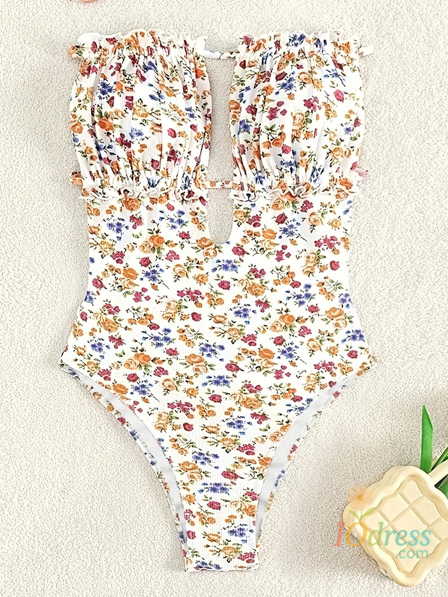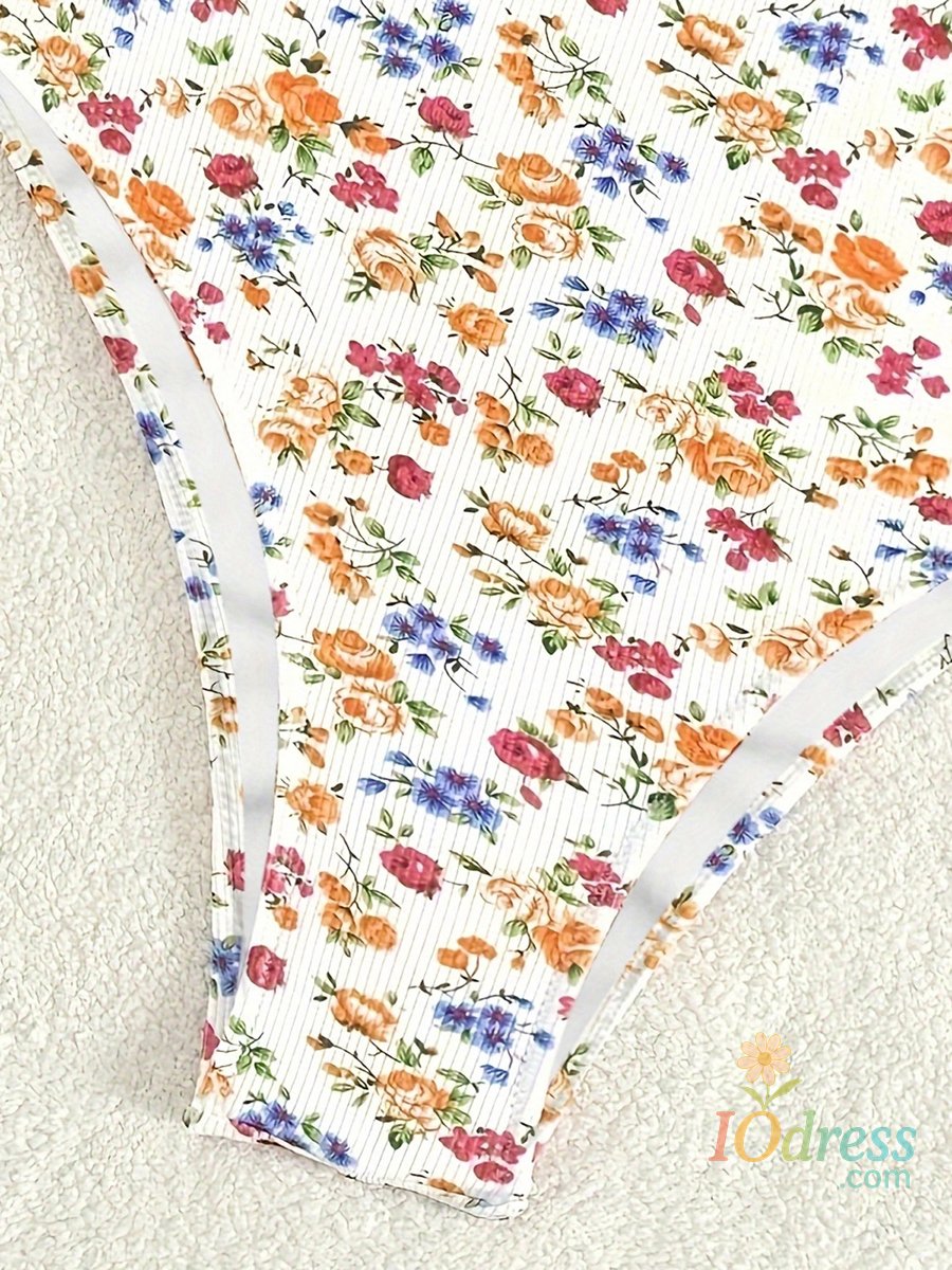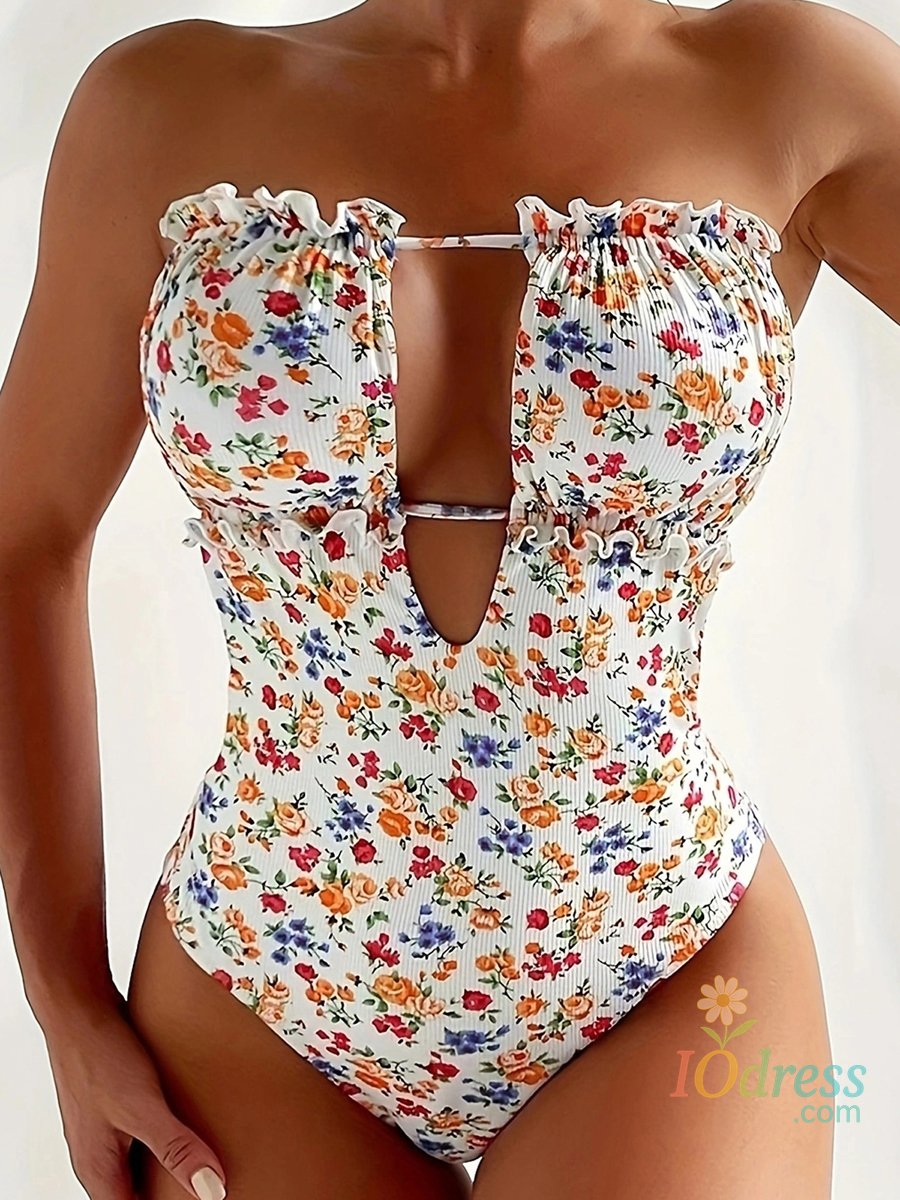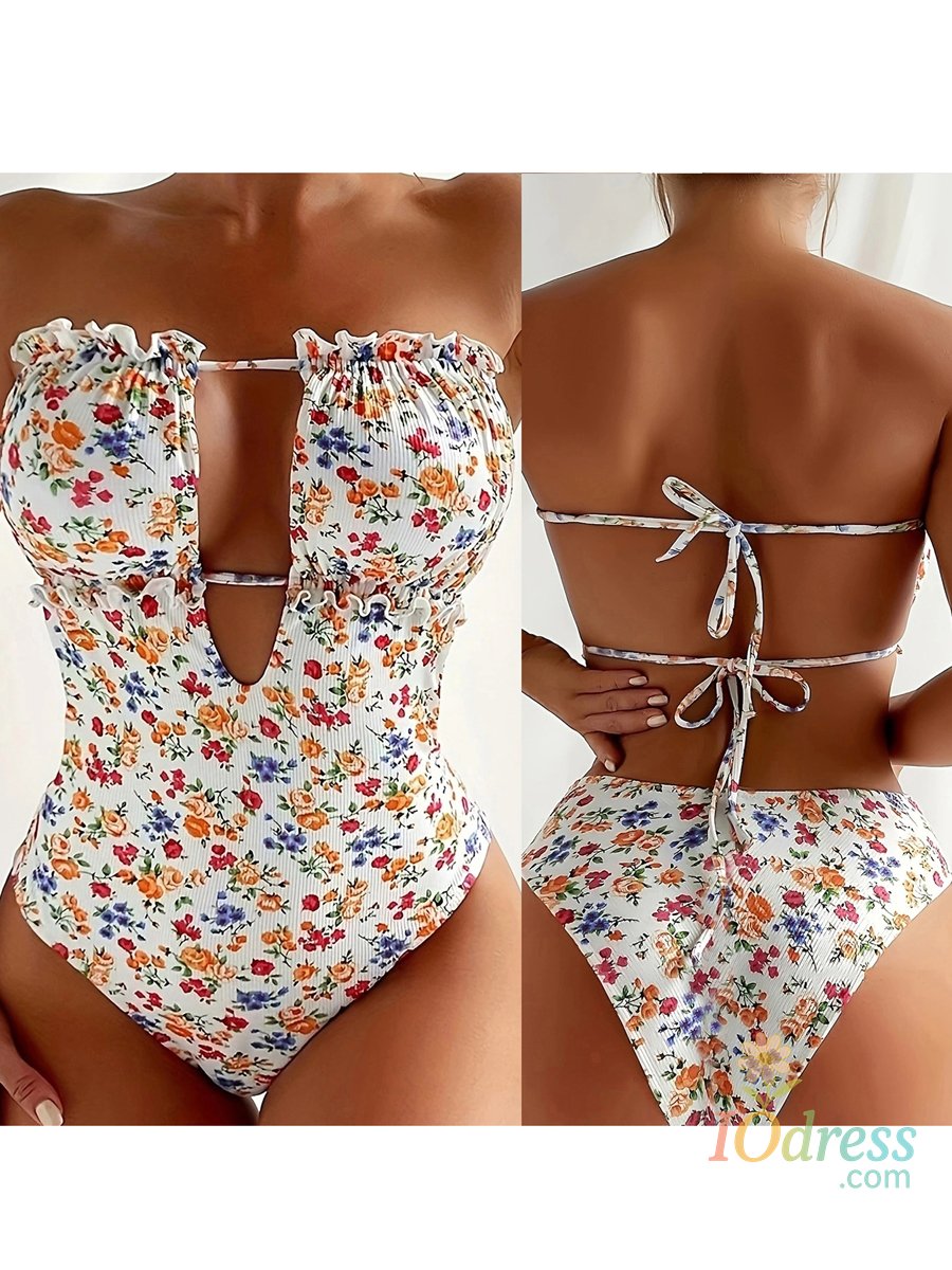Women Bikini, Strapless Backless Floral Slim Fit Summer Swimsuit Swimming Bathing Swimwear