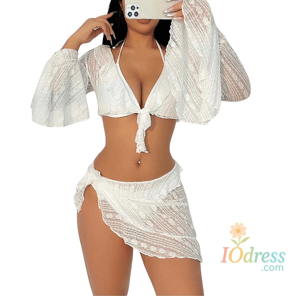 Features: 4 piece set, sheer, mesh, knot, halter neck, casual, trendy, lightweight, soft to wear.