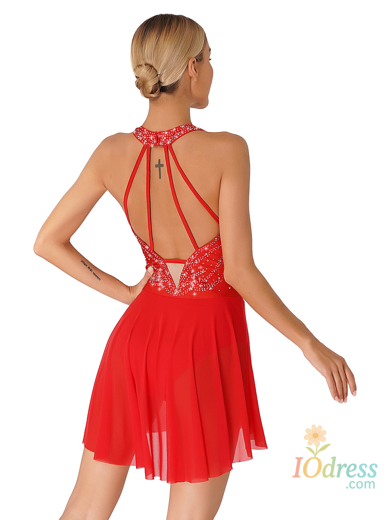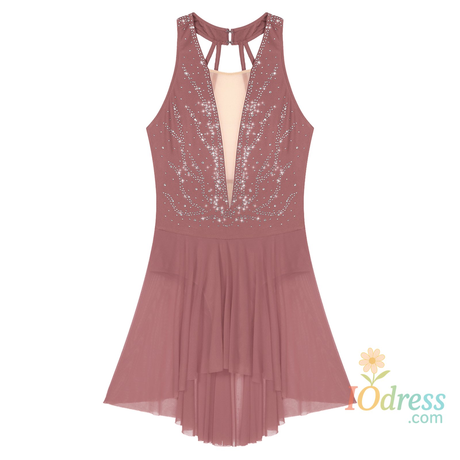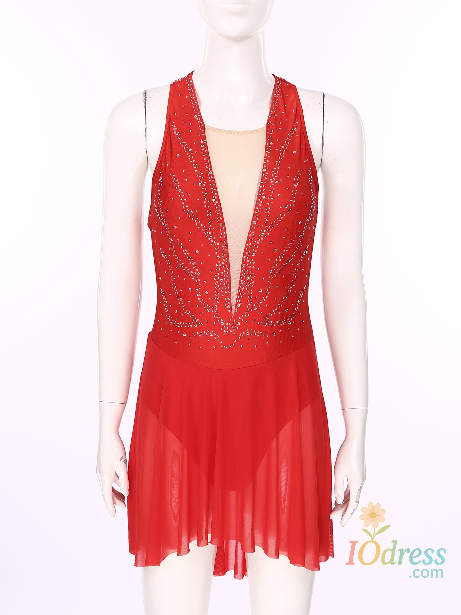 Sleeveless dance dress for women, embellished with rhinestone, sparkle under the light to brighten up any performance.