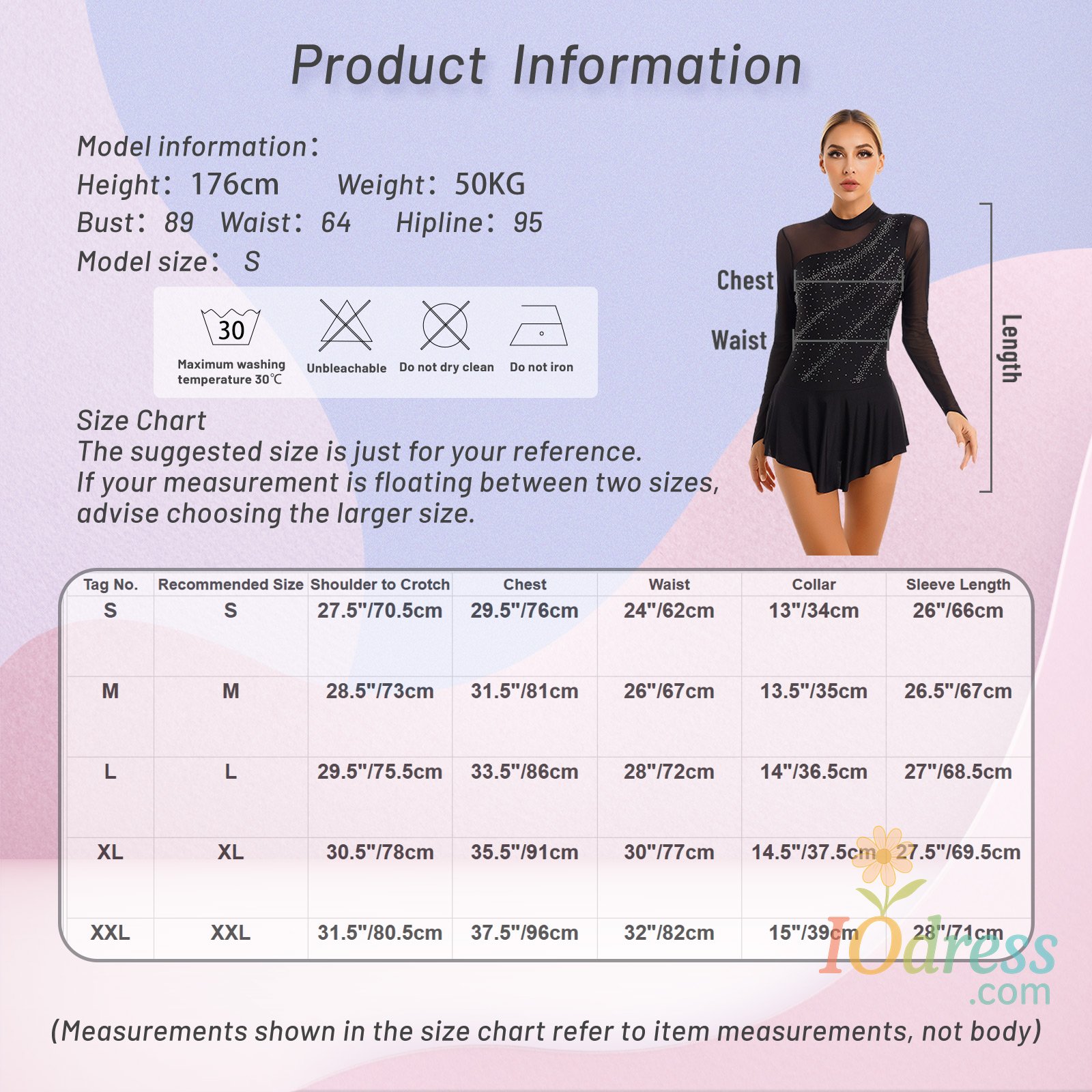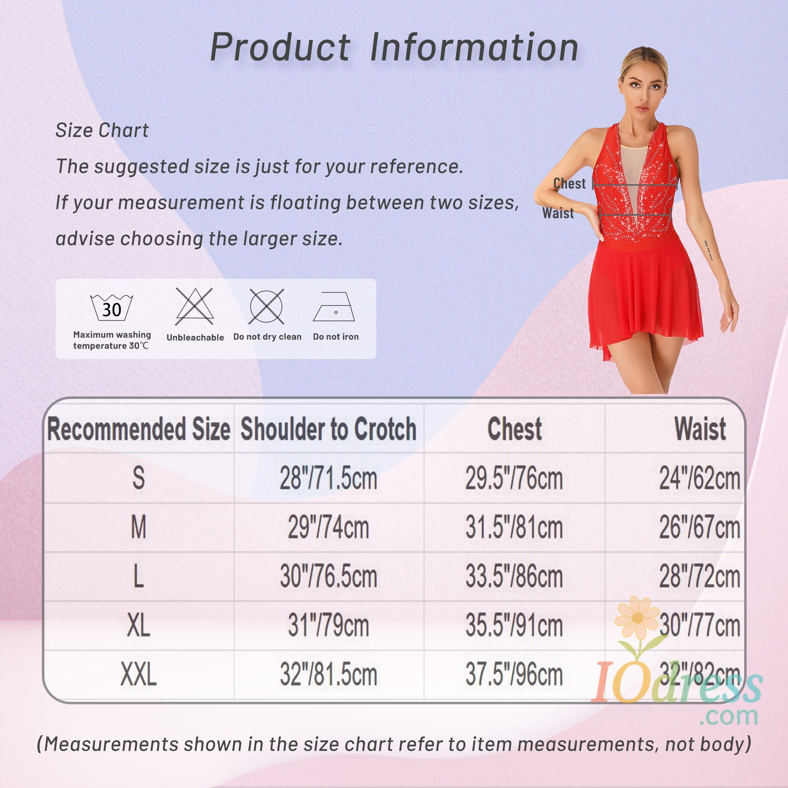 Size Chart: The suggested size is just for your reference. If your measurement is floating between two sizes, advise choosing the larger size. (Measurements shown in the size chart refer to item measurements, not body)