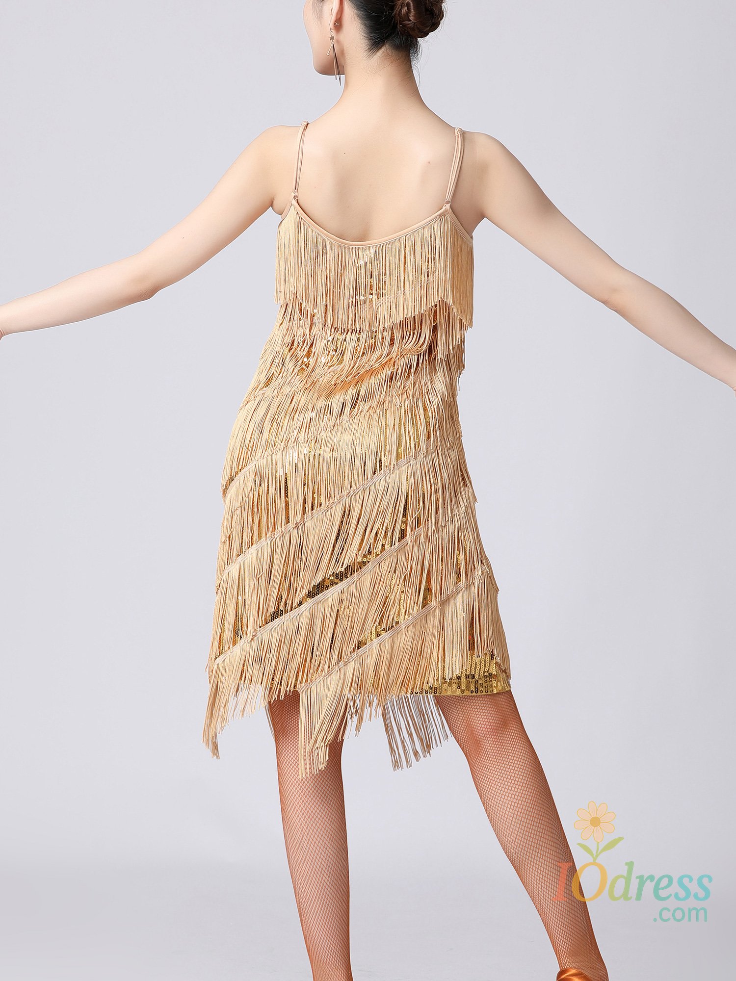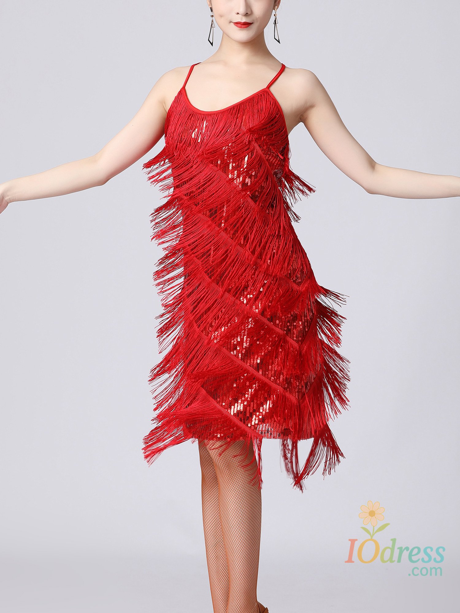 Women's sequins tassels Latin dance dress vintage 1920s flapper cocktail evening party dresses Rumba Latin Ballroom Salsa Cha Cha dress glitter dancewear costume, inspired by 1920s Great Gatsby costume dress up, shiny and sparkling sequins fringe and staps backless design, sexy and charming lyrical dance dress for party, belly dance, cha cha latin tango ballroom salsa samba rumba dance class or stage performance etc