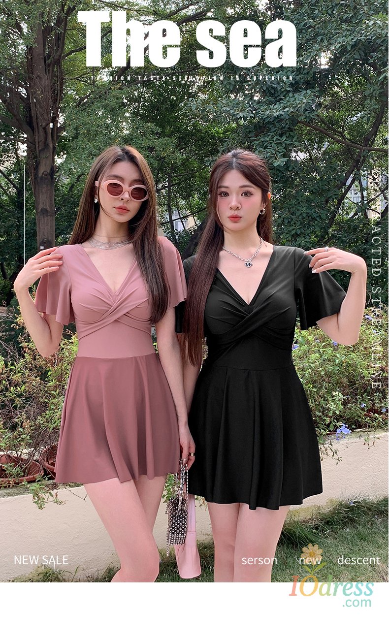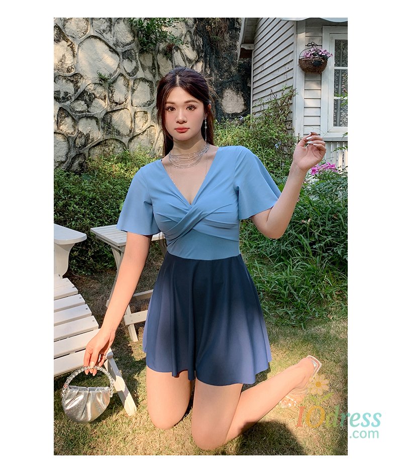 women's one-piecswimsuit with skirt large size : Korean swimsuits