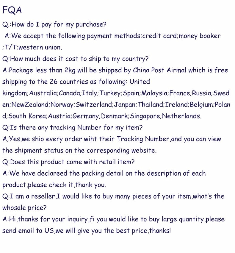 3. Under the virus situation, we use DHL or FedEx for the first part of shipping and transfer to local post service(USPS, AU Post~) to get it delivered for fastest shipping. You might be not able to track it at website for few days early, but we promise it should be delivered in time and it is legit number.